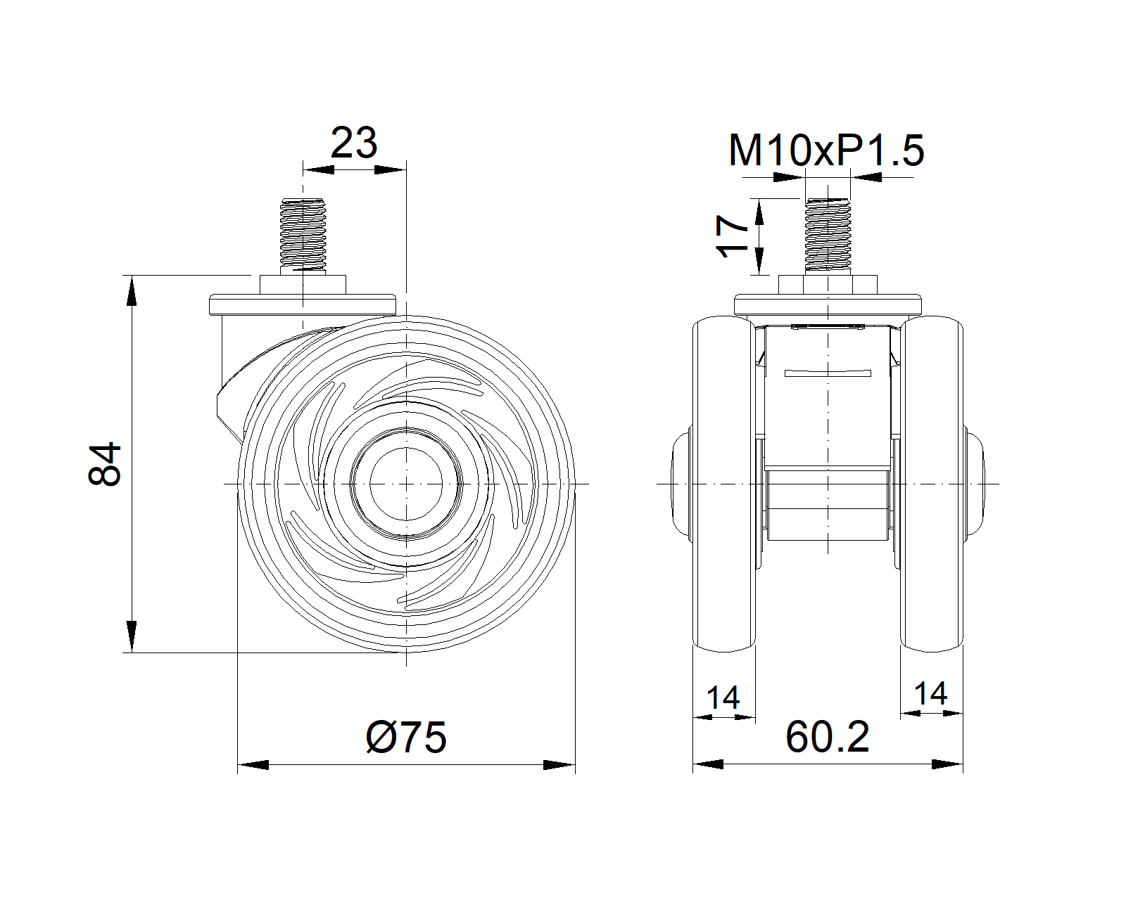 | Resolute Rubber wheel (white dark gray) Wheel Diameter x Wheel Width 75x 14mm |