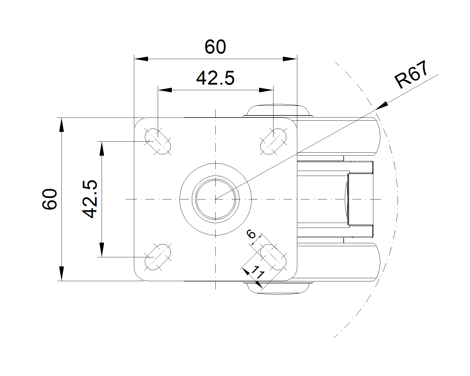 Swivel Casters, 42.5x42.5mm angled perforated Top Plate