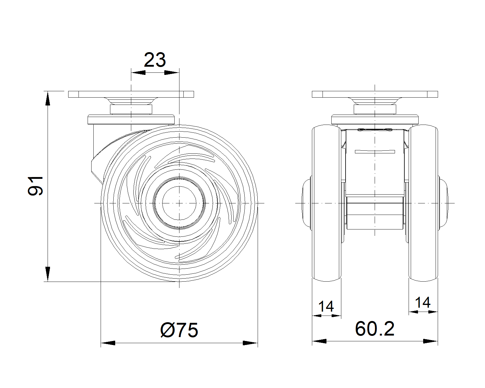 | Resolute Rubber wheel (white dark gray) Wheel Diameter x Wheel Width 75x 14mm |