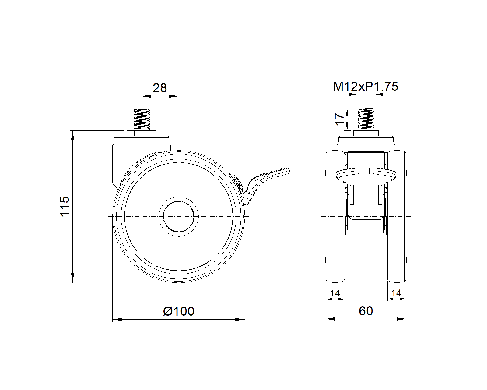 | Resolute Rubber wheel (white dark gray) Wheel Diameter x Wheel Width 100 x 14mm |