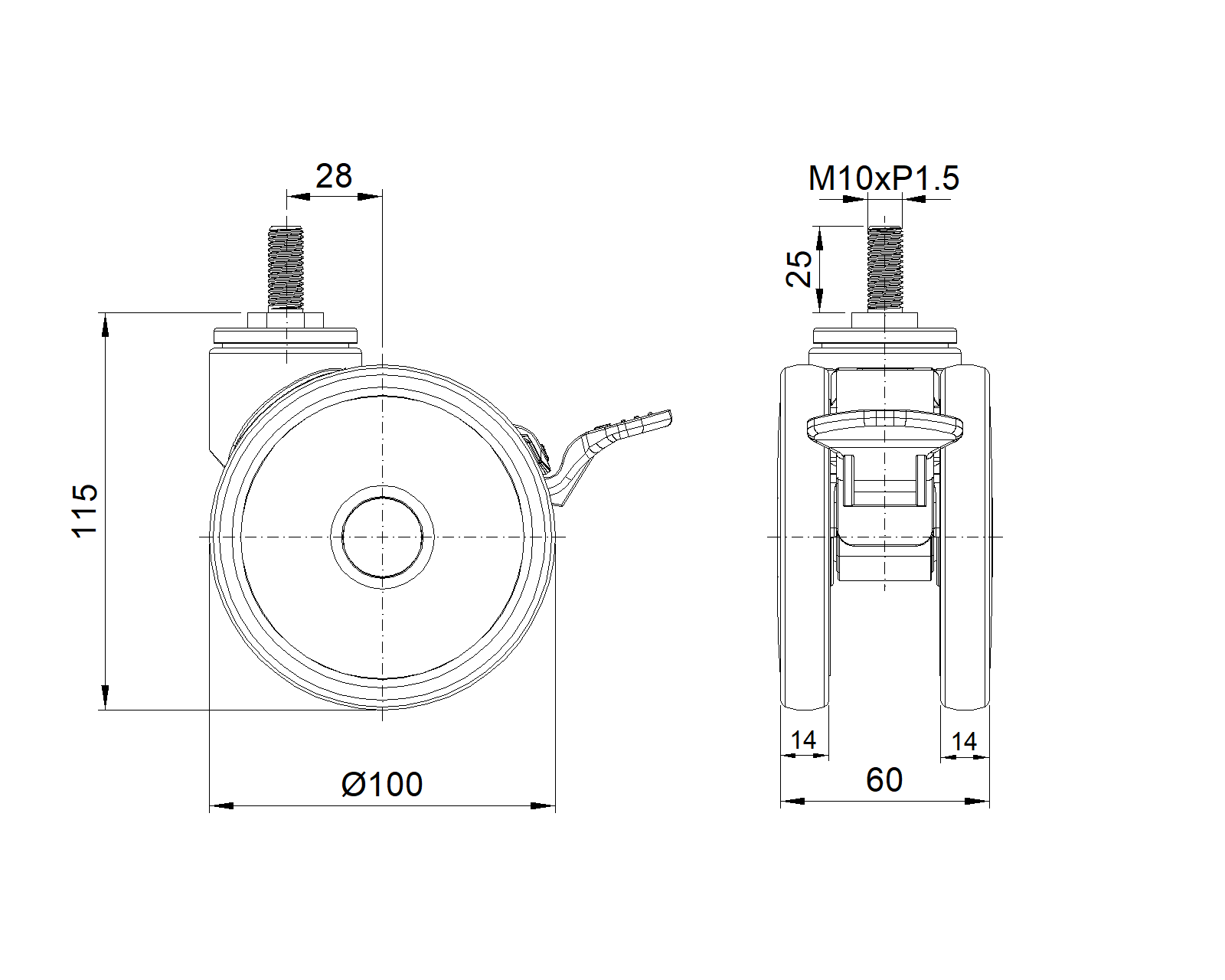 | Wheel tread: Thermoplastic rubber elastomer (TPR) Wheel Center: Made of high-quality impact-resistant polypropylene Drawings are for reference only and may differ from the product |