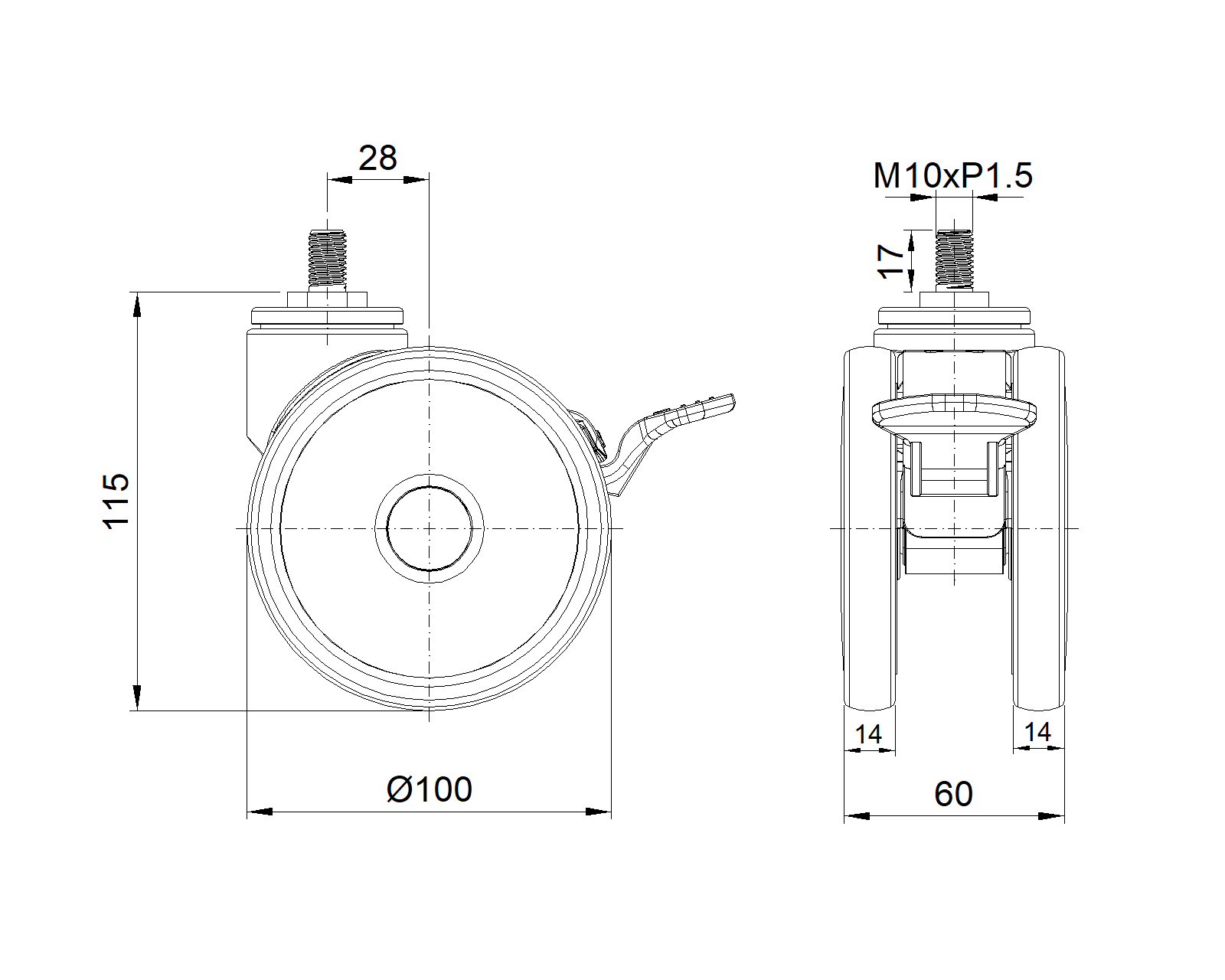 | Wheel tread: Thermoplastic rubber elastomer (TPR) Wheel Center: Made of high-quality impact-resistant polypropylene Drawings are for reference only and may differ from the product |