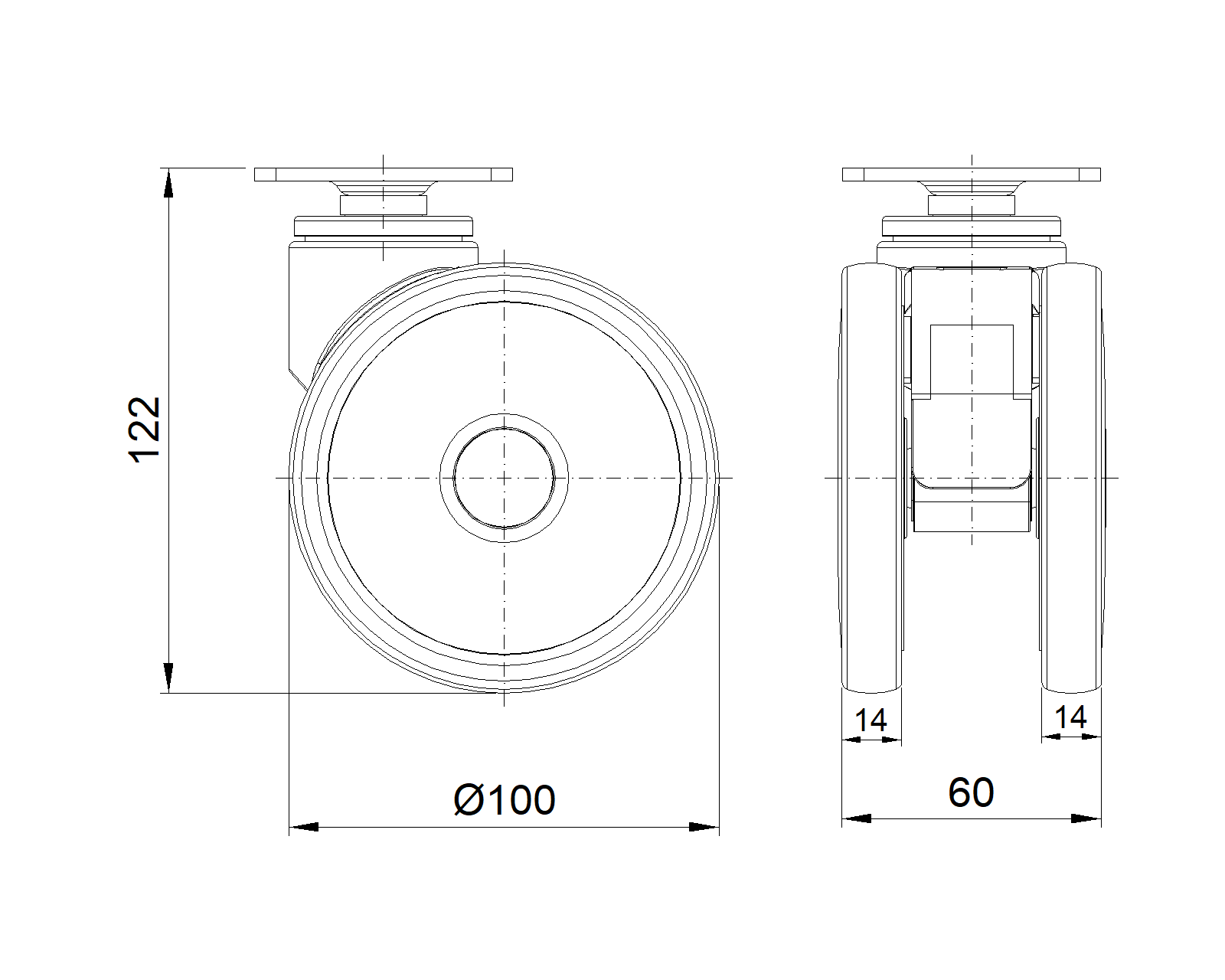 | Resolute Rubber wheel (white dark gray) Wheel Diameter x Wheel Width 100 x 14mm |