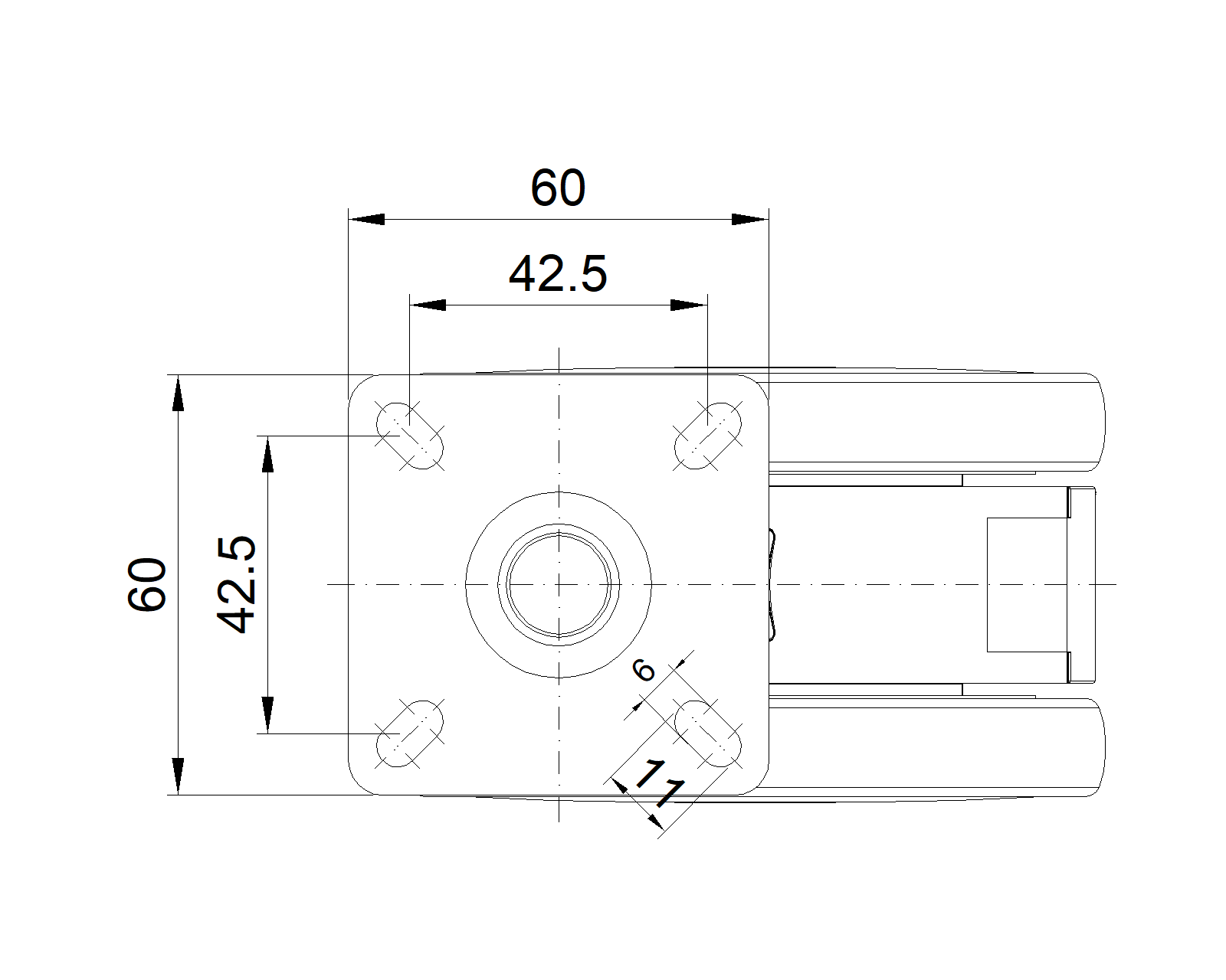 Rigid Casters, 42.5x42.5mm angled hole Top Plate