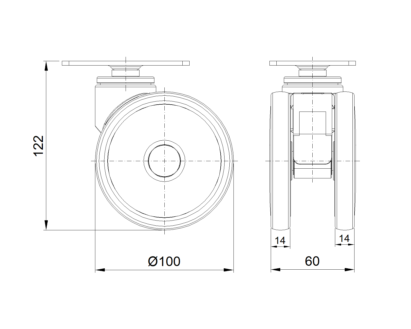 | Resolute Rubber wheel (white dark gray) Wheel Diameter x Wheel Width 100 x 14mm |