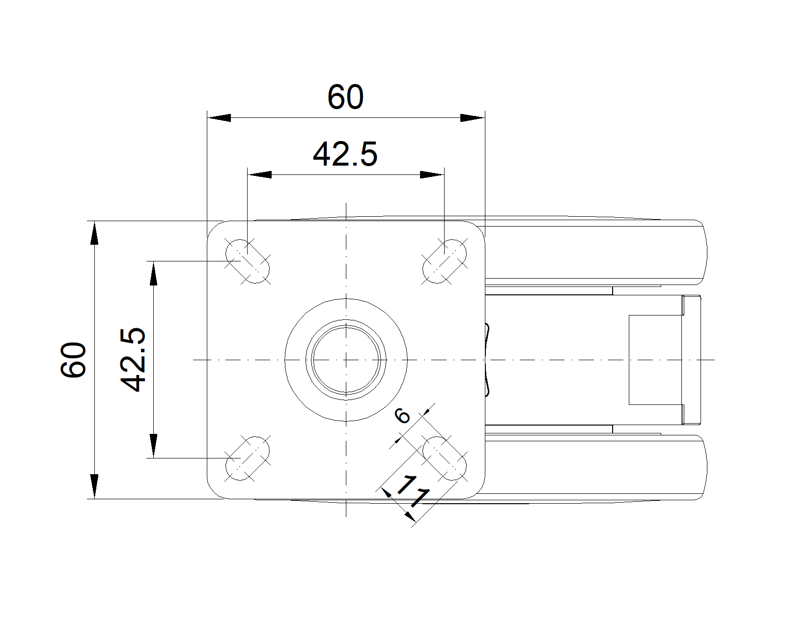 Rigid Casters, 42.5x42.5mm angled hole Top Plate