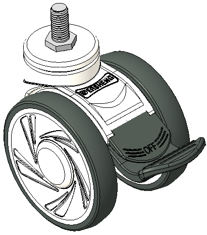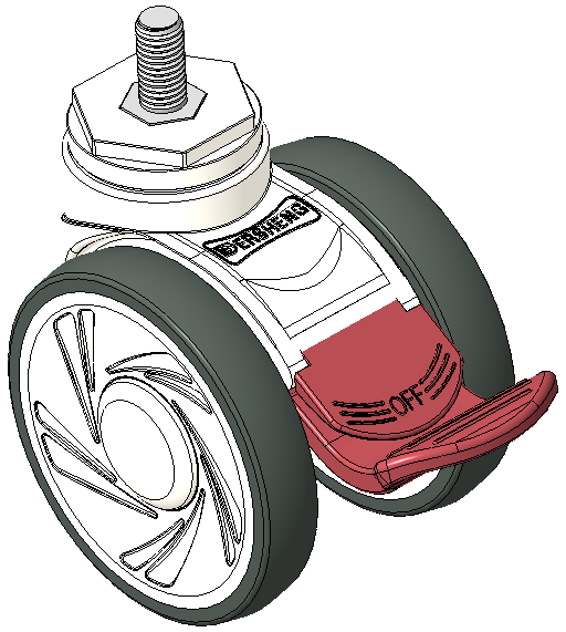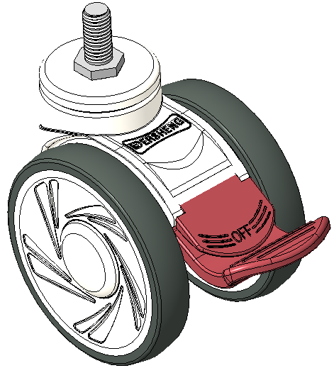 Long Total Brake Casters, Threaded Stem M12x25