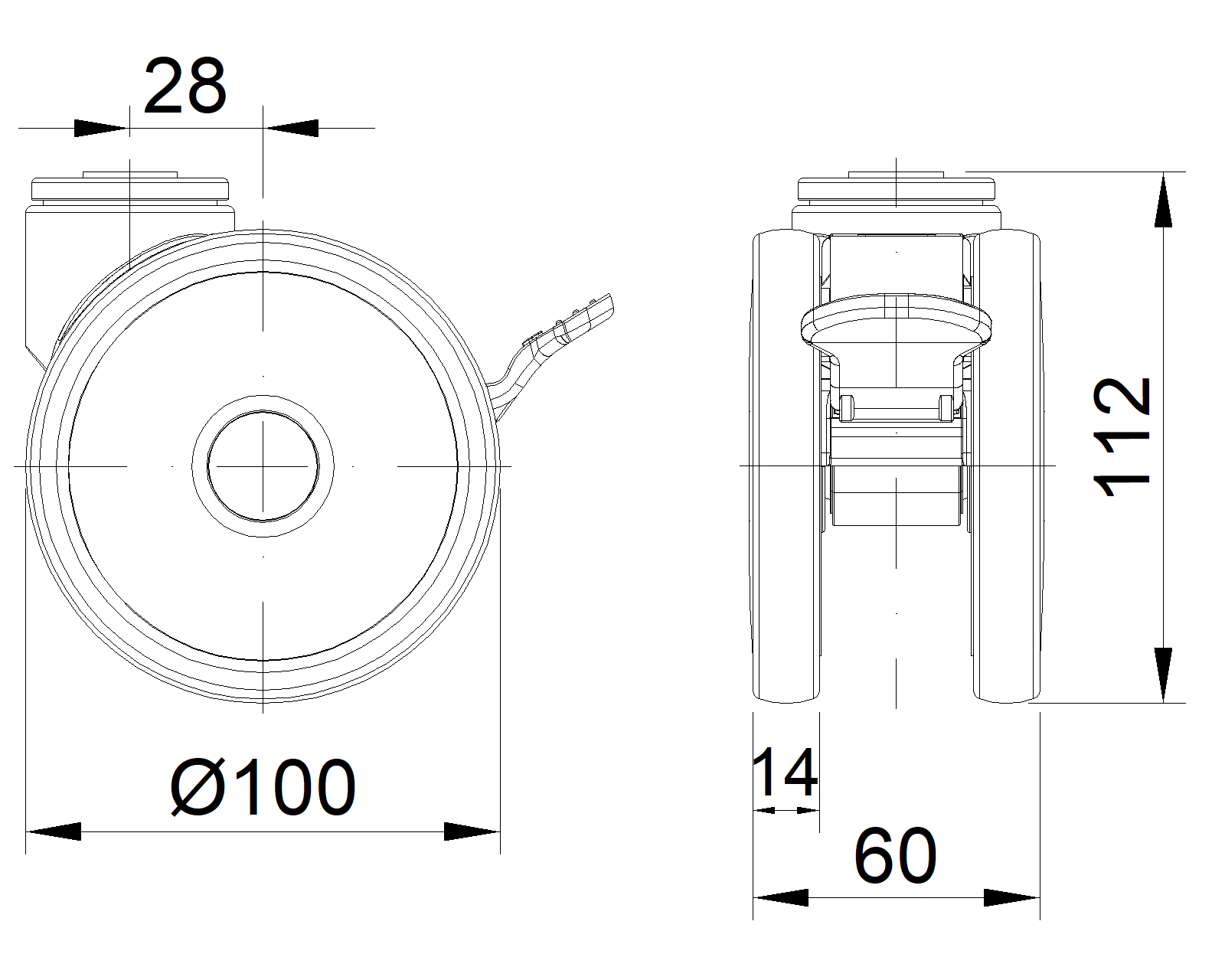 Metric Imperial Wheel Diameter 100mm Wheel Width 60mm |
