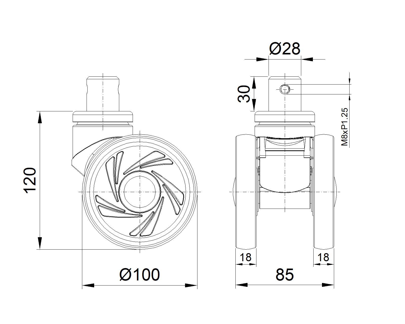 Rigid Casters, mortise-and-tenon Stamping Fork—Ø28x30L