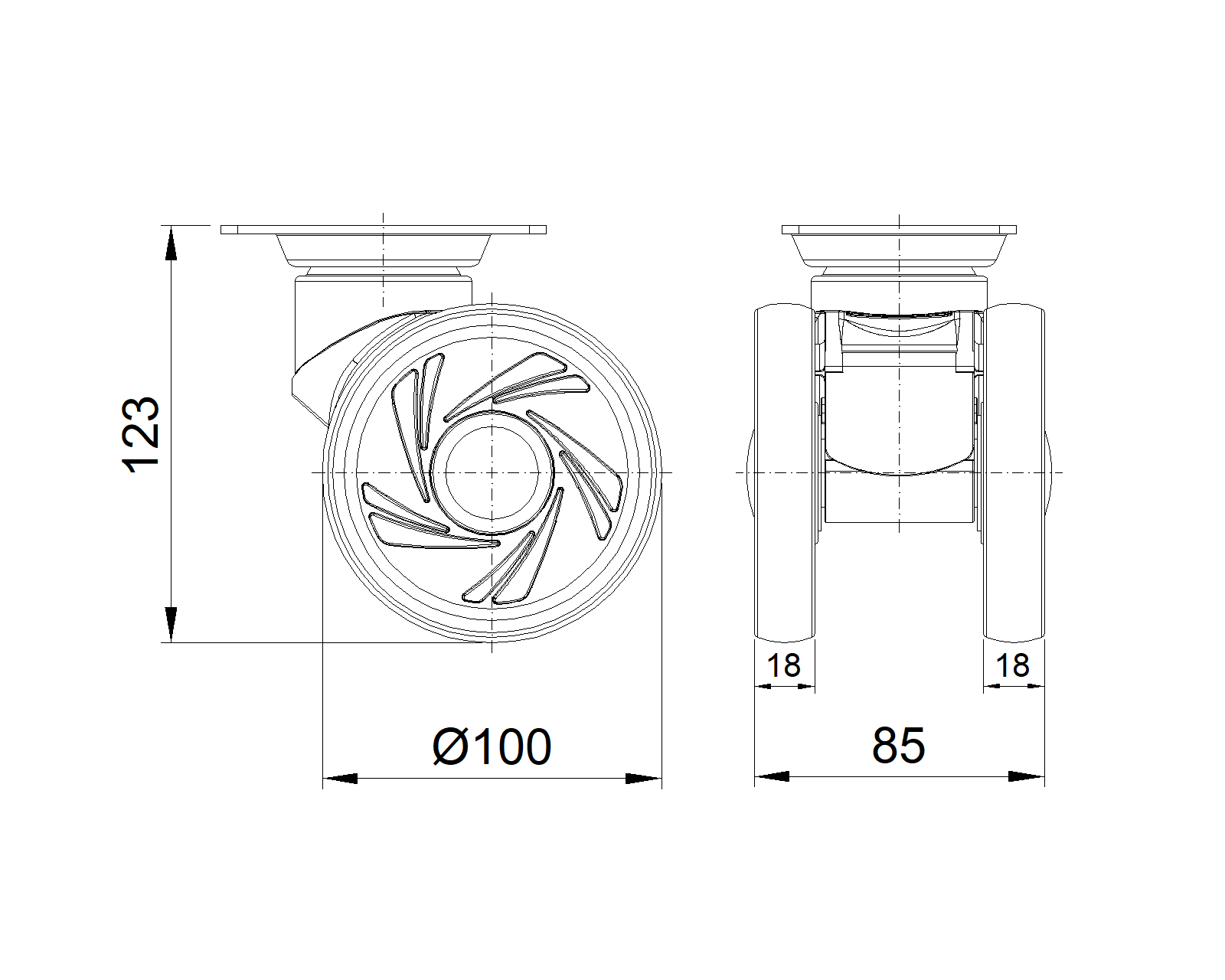 | Resolute Rubber wheel (window gray dark gray) Wheel Diameter x Wheel Width 100 x 18mm |
