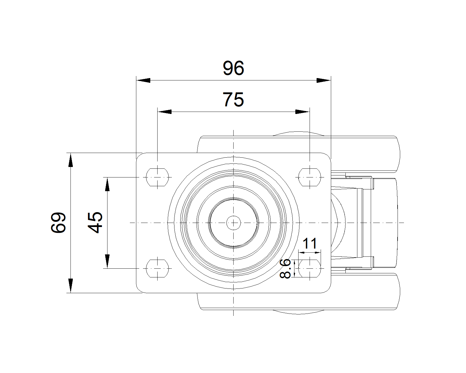 | Wheel tread: Thermoplastic rubber elastomer (TPR) Wheel Center: Made of high-quality impact-resistant polypropylene Drawings are for reference only and may differ from the product |