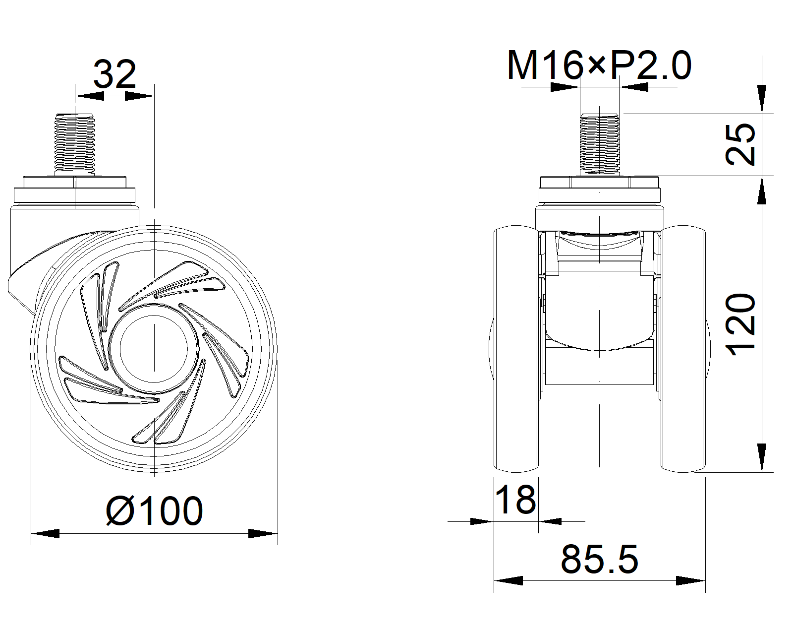 Metric Imperial Wheel Diameter 100mm Wheel Width 85.5mm |