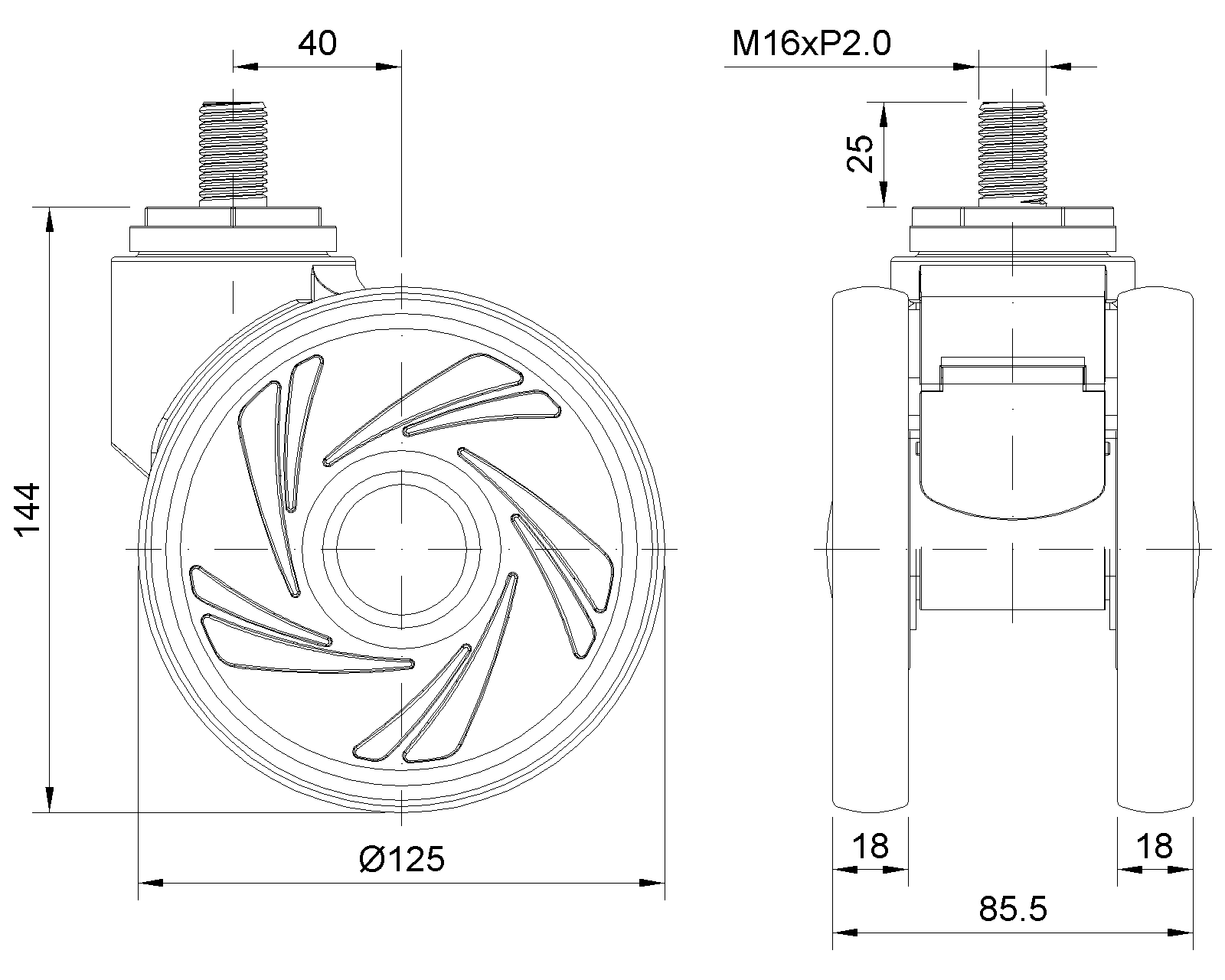 Swivel Casters, Threaded Stem M16x25 White legs made of polyamide reinforced material Rust-proof, Corrosion resistant, Attractive appearance, Economical, and rotates smoothly High-Quality Impact-Resistant Polypropylene Wheel Center, High-Quality Reinforced Polypropylene Rubber (TPR) Wheel Tread Dark gray, Bearing—Ball Bearings |