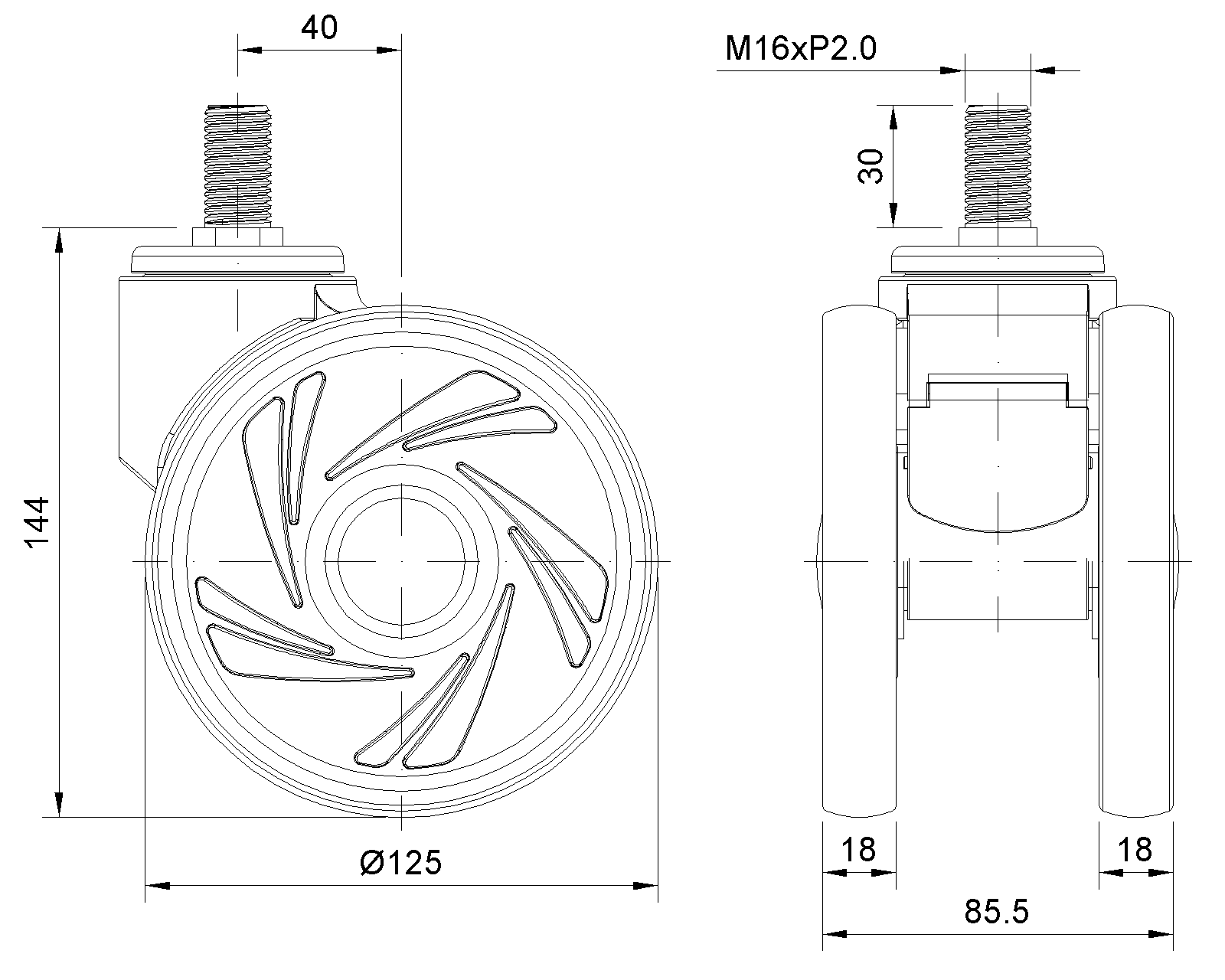 | Resolute Rubber wheel (white dark gray) Wheel Diameter x Wheel Width 125 x 18mm |
