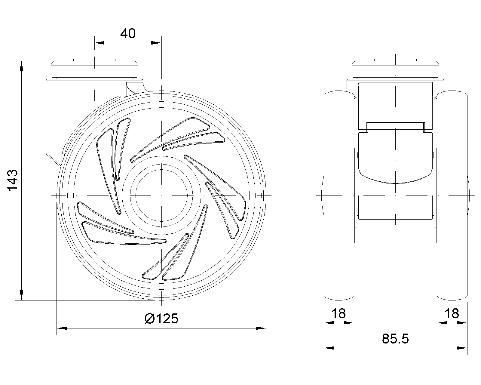 | Resolute Rubber wheel (white dark gray) Wheel Diameter x Wheel Width 125 x 18mm |