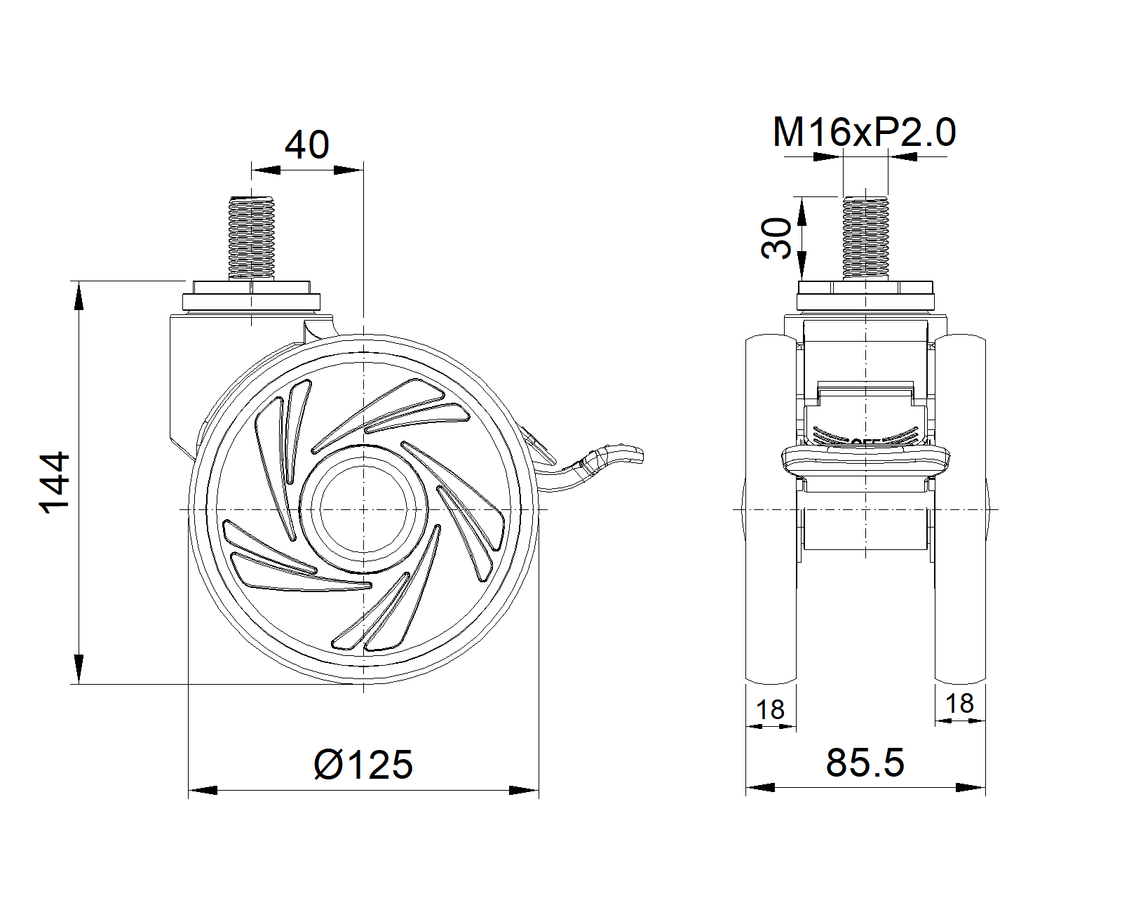 | Resolute Rubber wheel (white dark gray) Wheel Diameter x Wheel Width 125 x 18mm |