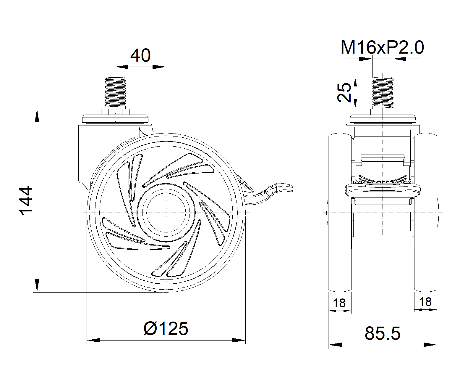 | Resolute Rubber wheel (white dark gray) Wheel Diameter x Wheel Width 125 x 18mm |