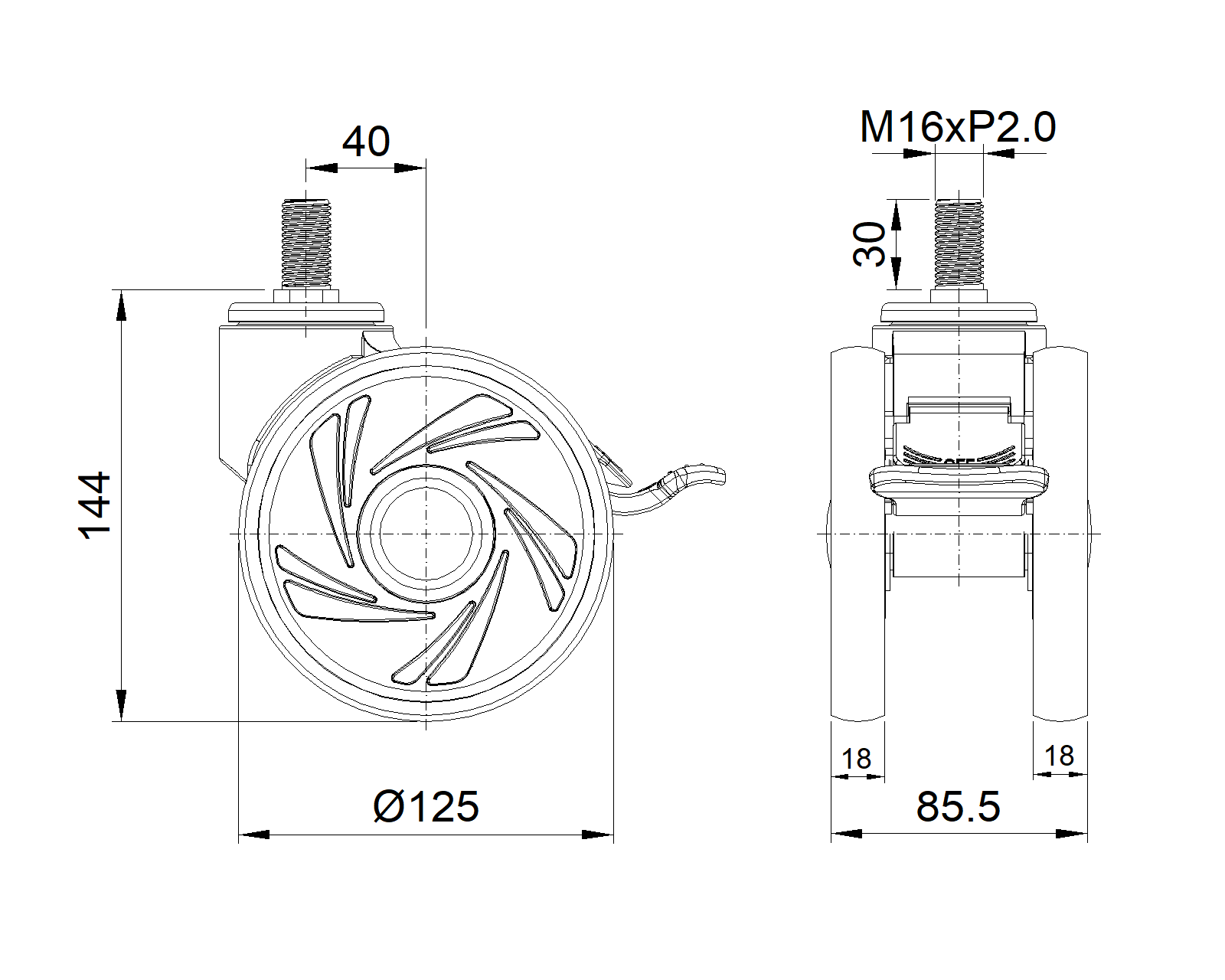 | Resolute Rubber wheel (white dark gray) Wheel Diameter x Wheel Width 125 x 18mm |