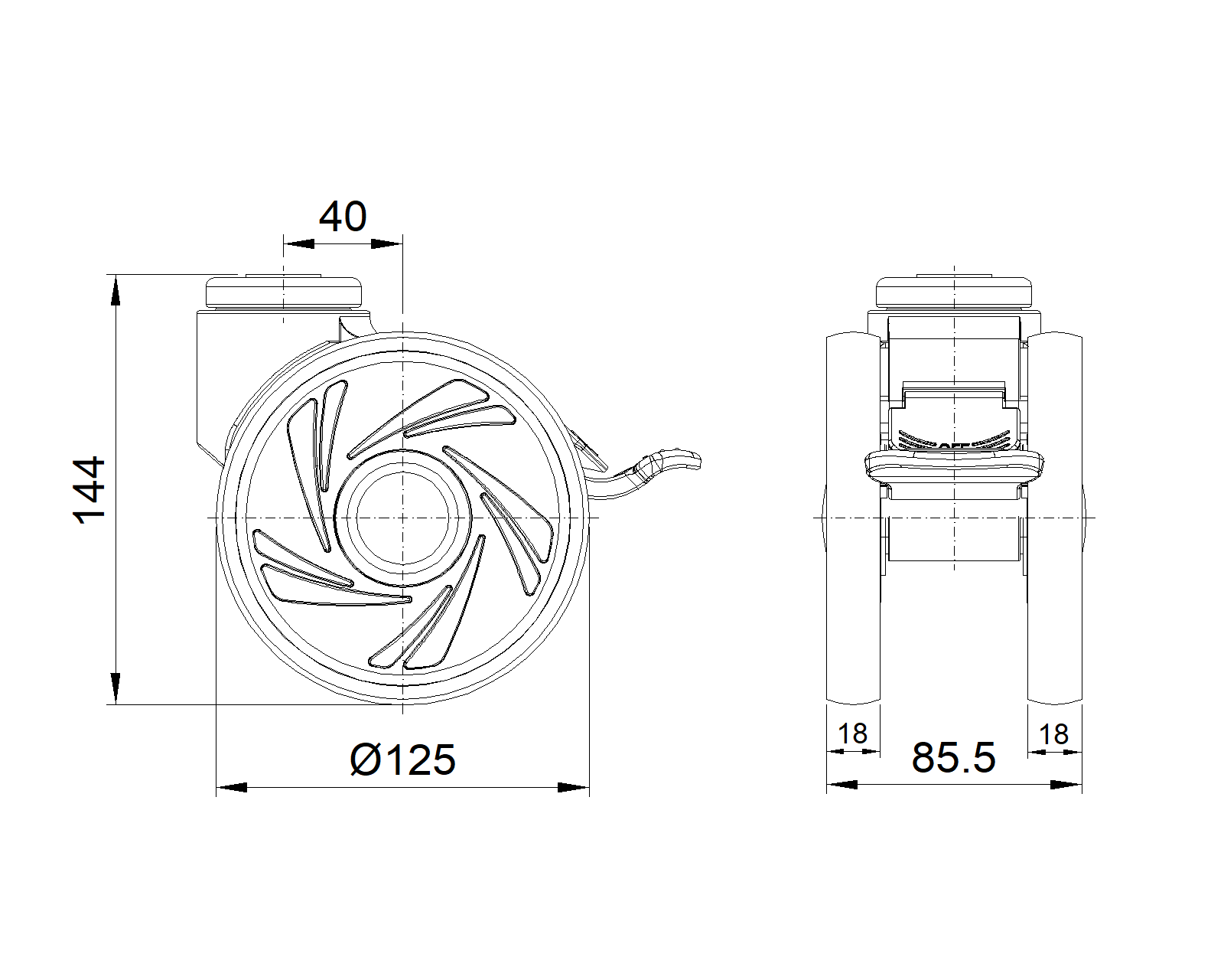 | Resolute Rubber wheel (white dark gray) Wheel Diameter x Wheel Width 125 x 18mm |