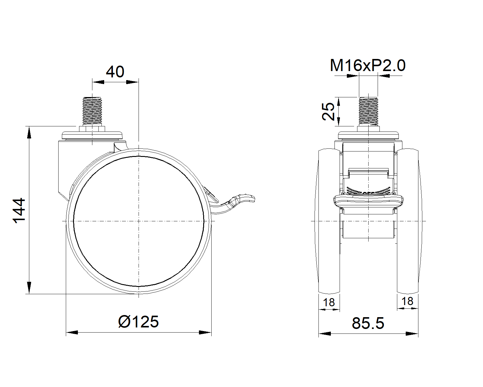 | Resolute Rubber wheel (white dark gray - large cover version) Wheel Diameter x Wheel Width 125 x 18 |