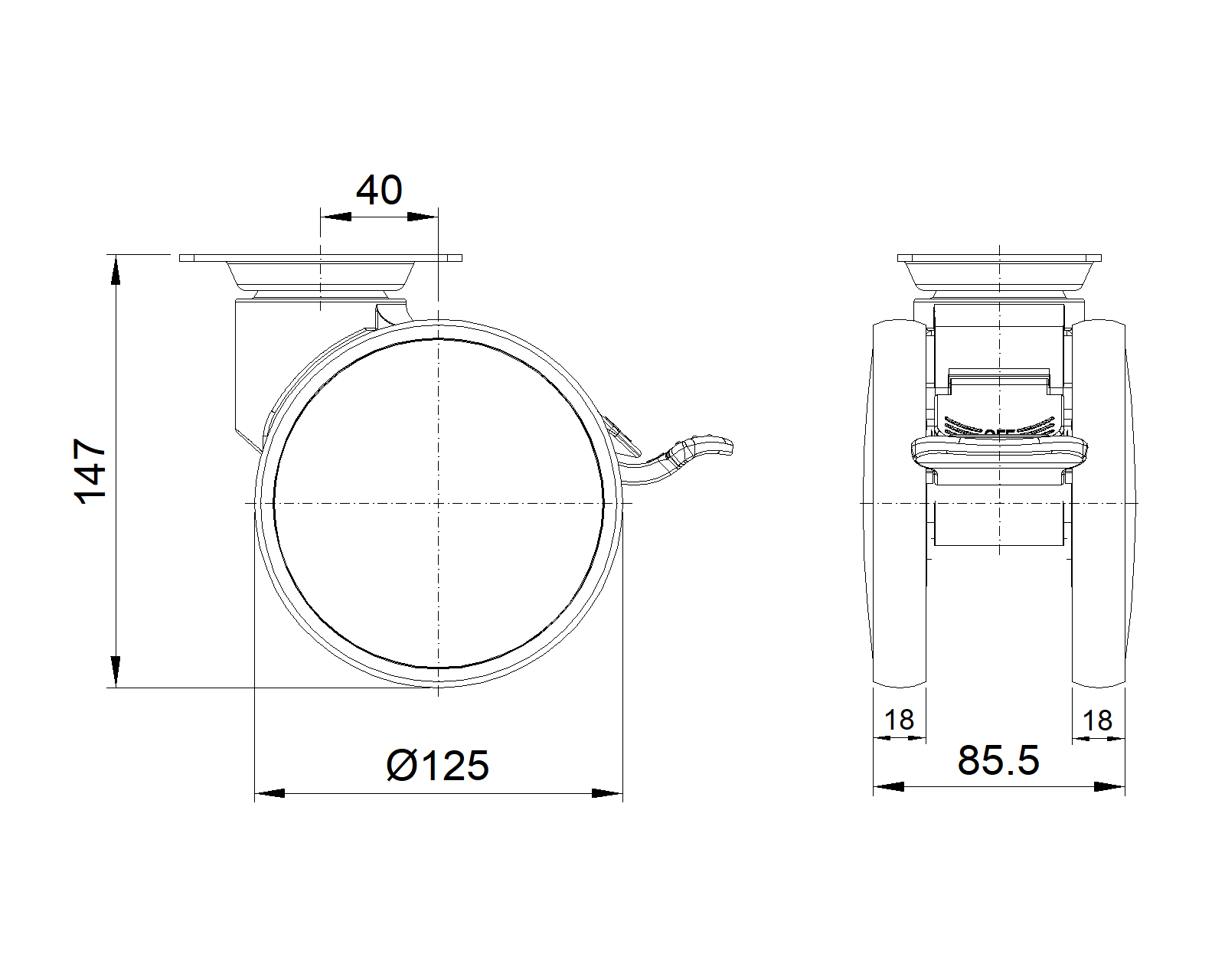 | Resolute Rubber wheel (white dark gray - large cover version) Wheel Diameter x Wheel Width 125 x 18 |