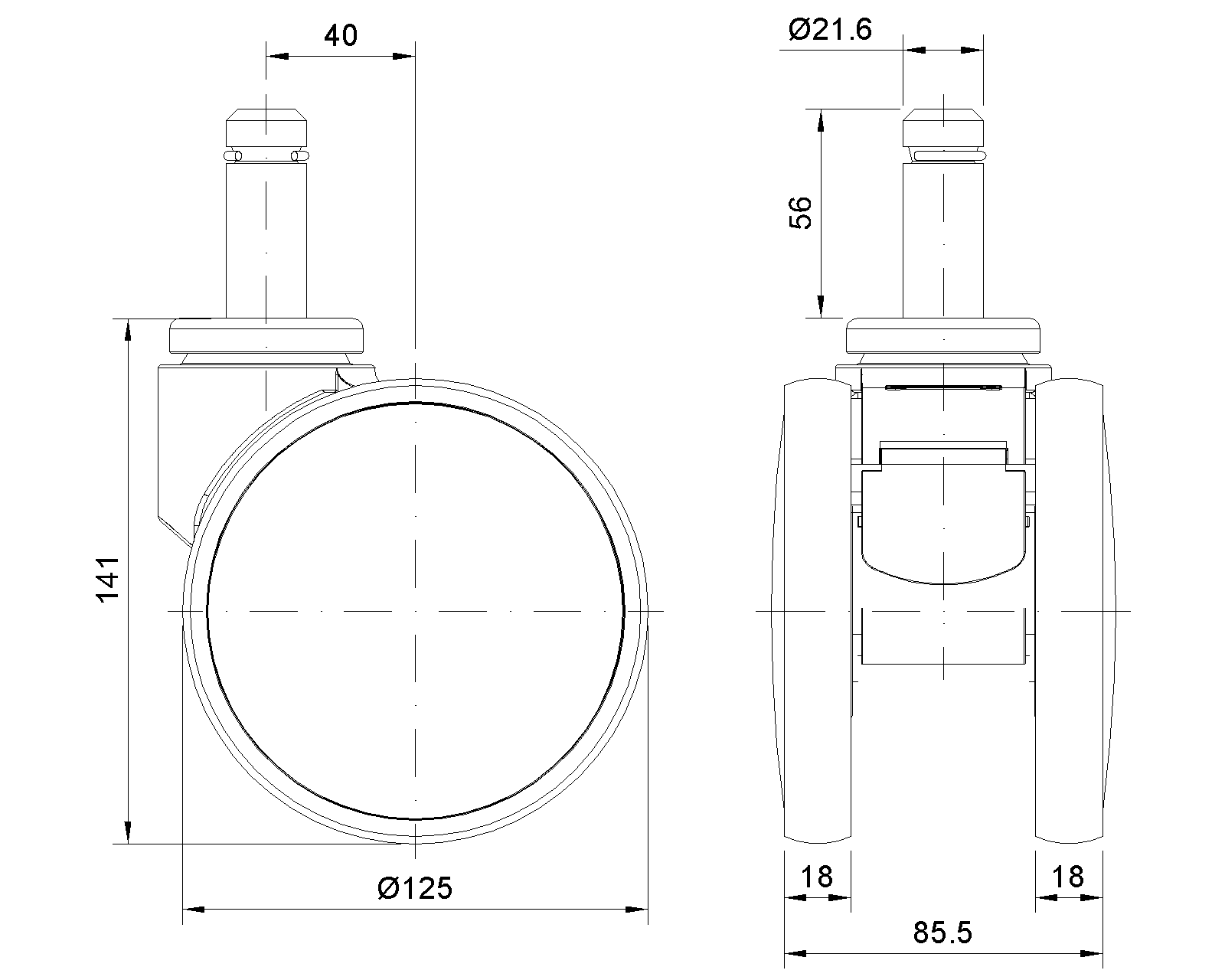 Actuable Casters, mortise-and-tenon Stamping Fork—Ø21.6x56L White legs made of polyamide reinforced material Rust-proof, Corrosion resistant, Attractive appearance, Economical, and allows for smooth rotation High-Quality Impact-Resistant Polypropylene Wheel Center, High-Quality Reinforced Polypropylene Rubber (TPR) Wheel Tread Dark gray, Bearing—Ball Bearings |