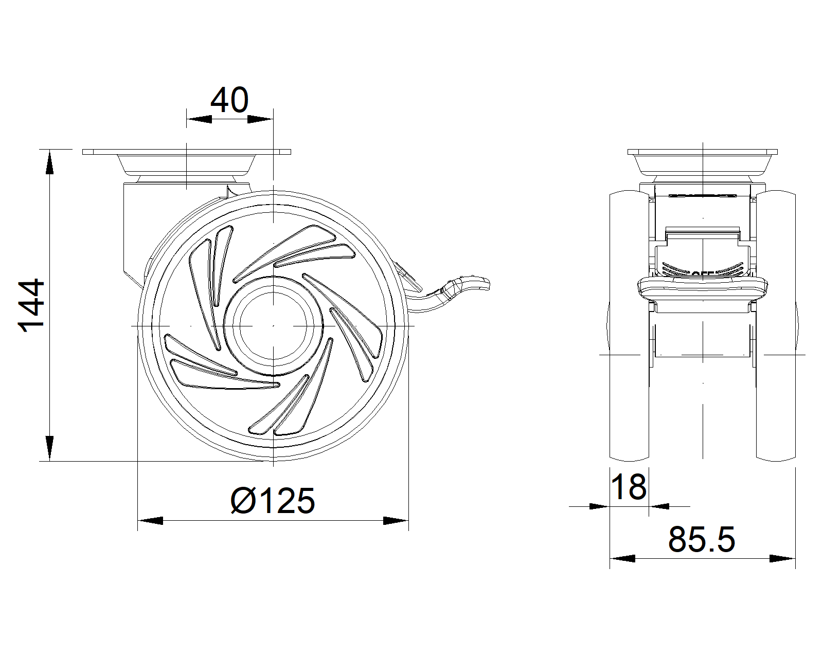 | Resolute Rubber wheel (white dark gray) Wheel Diameter x Wheel Width 125 x 18mm |
