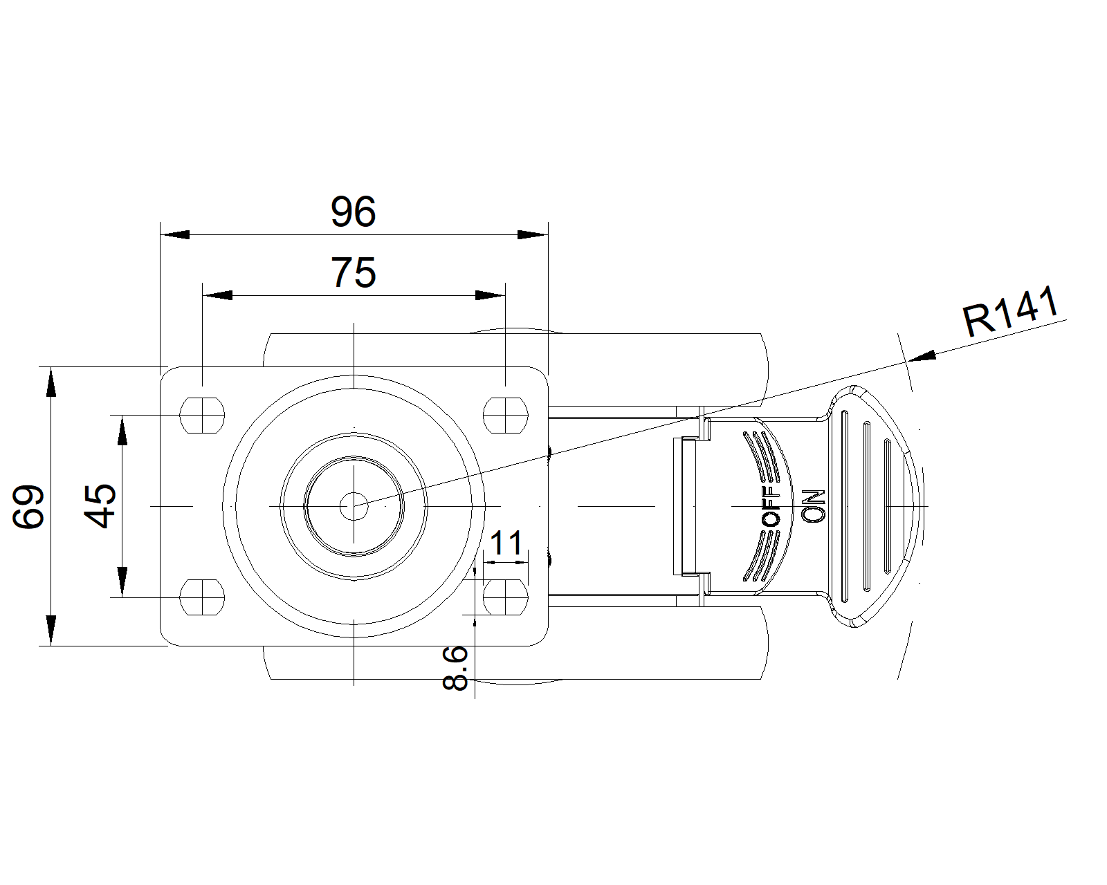 Adjustable Casters, 75x45 angled perforated Top Plate