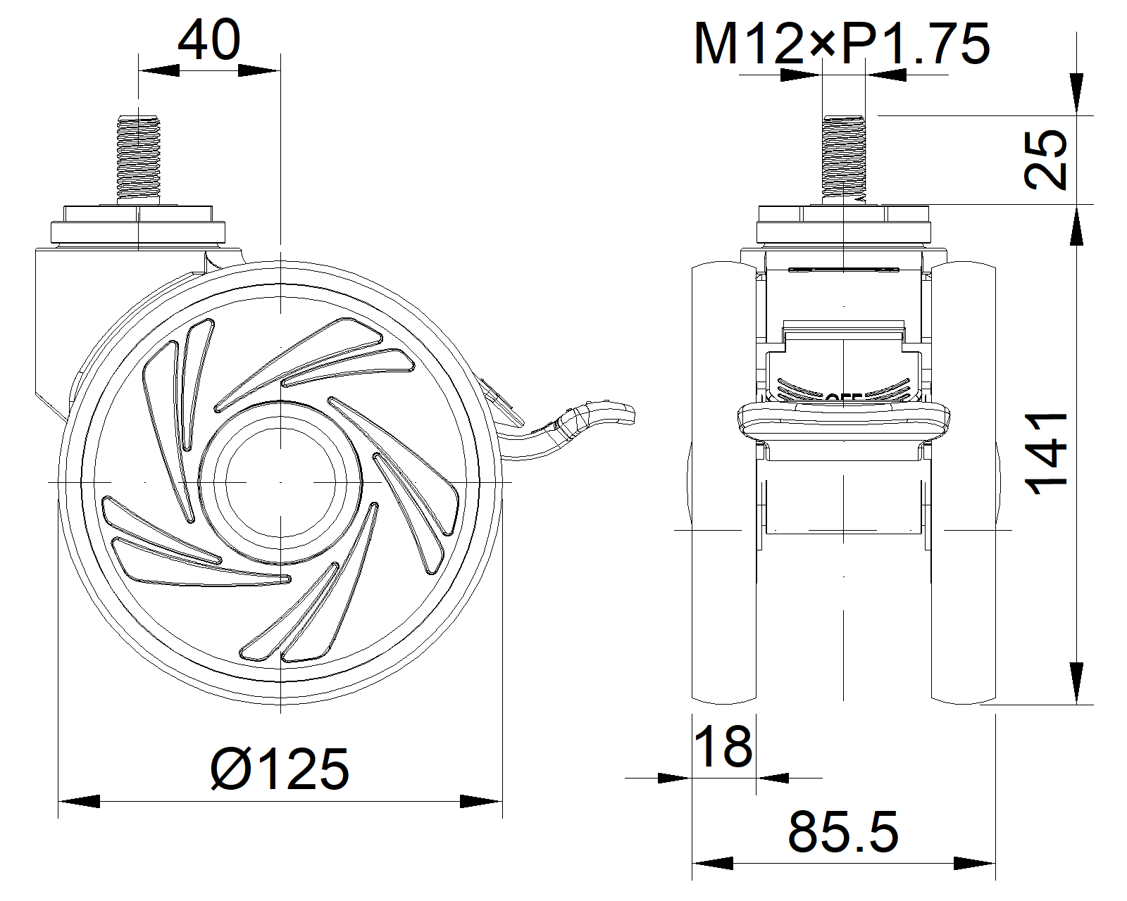 | Resolute Rubber wheel (white dark gray) Wheel Diameter x Wheel Width 125 x 18mm |