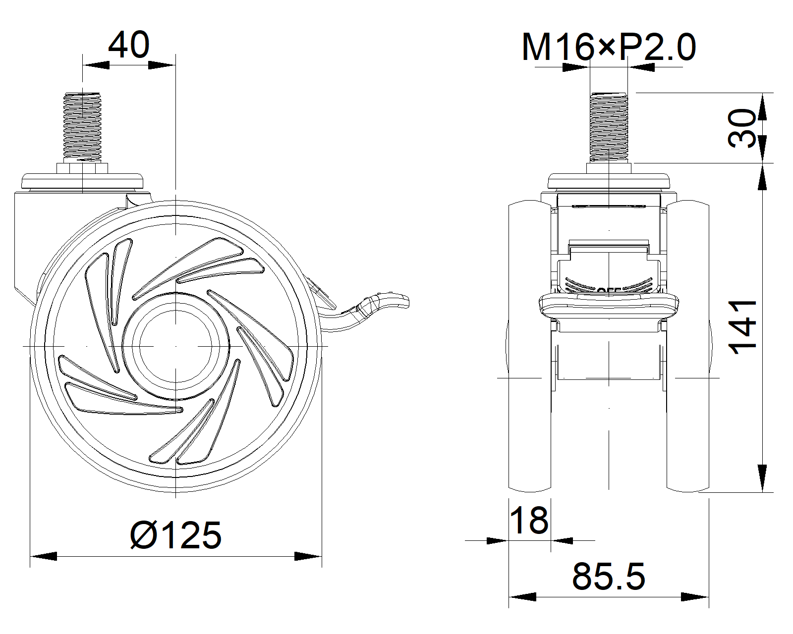| Resolute Rubber wheel (white dark gray) Wheel Diameter x Wheel Width 125 x 18mm |
