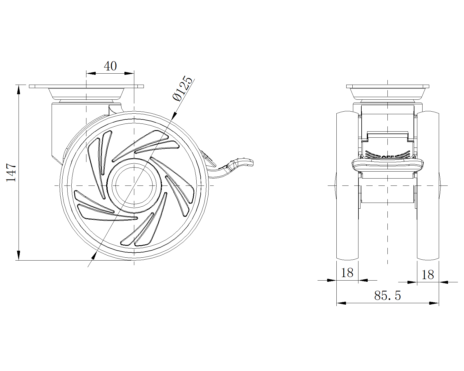 | Wheel tread: Thermoplastic rubber elastomer (TPR) Wheel Center: Made of high-quality impact-resistant polypropylene Drawings are for reference only and may differ from the product |