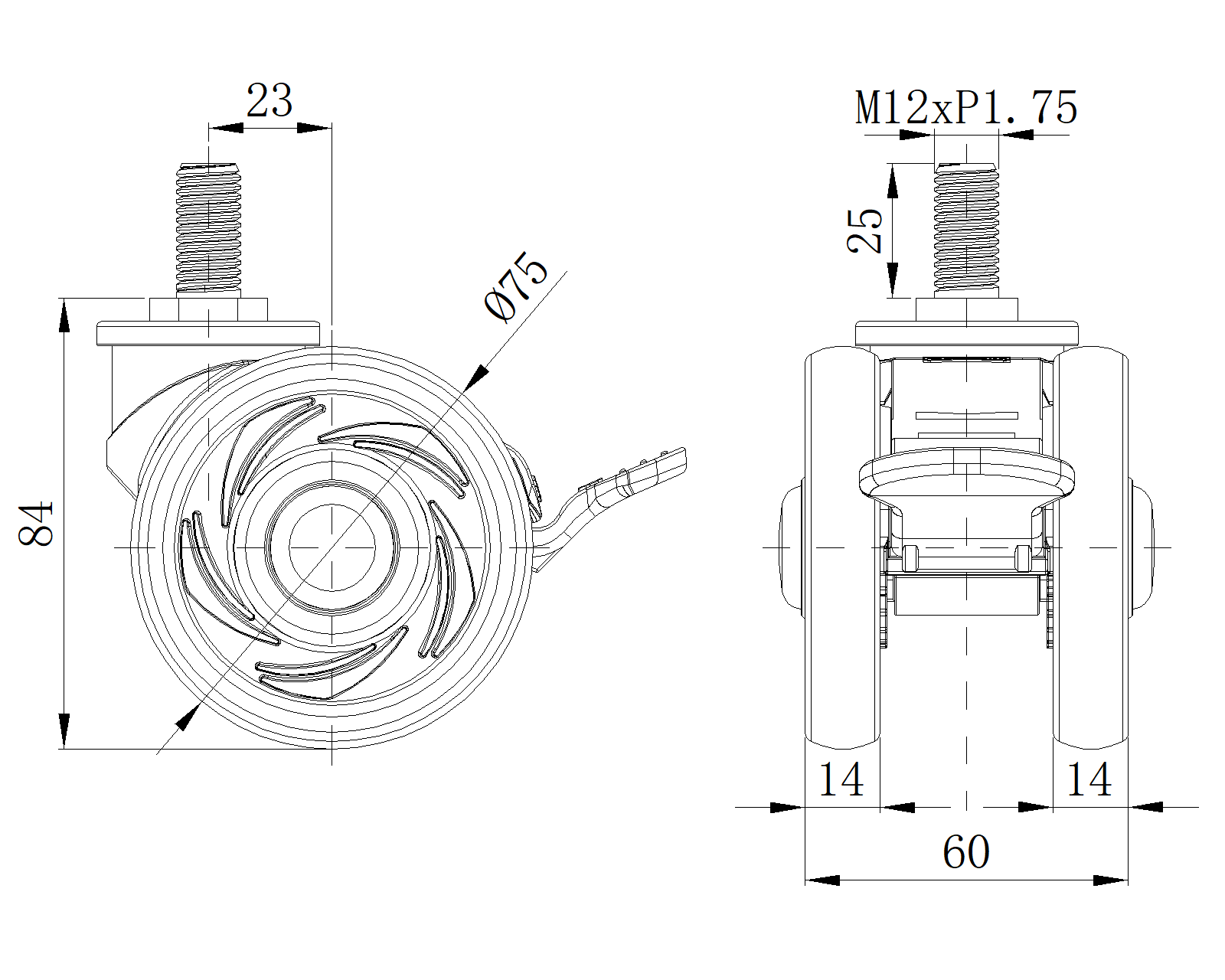 Metric Imperial Wheel Diameter 75mm Wheel Width 60mm |
