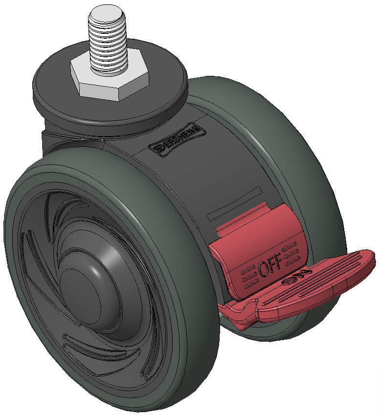 Short Total Brake Casters, Threaded Stem M10x17 Black Caster Fork made of polypropylene reinforced material Rust-proof, Corrosion resistant, Attractive appearance, Economical, and easy to maneuver High-Quality Impact-Resistant Polypropylene Wheel Center, High-Quality Reinforced Polypropylene Rubber (TPR) Wheel Tread Black, Bearing—Ball Bearings |