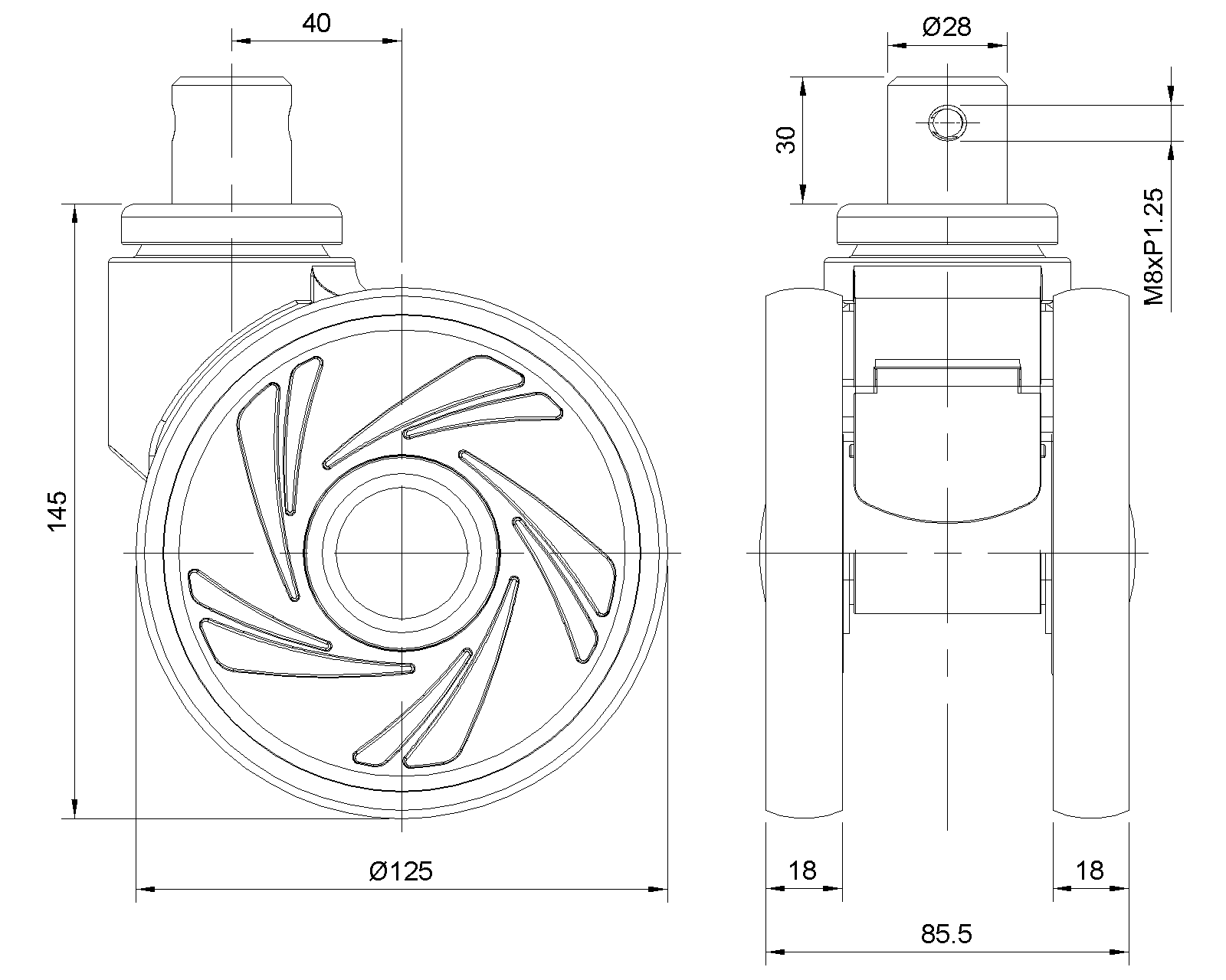 | Resolute Rubber wheel (white dark gray) Wheel Diameter x Wheel Width 125 x 18mm |