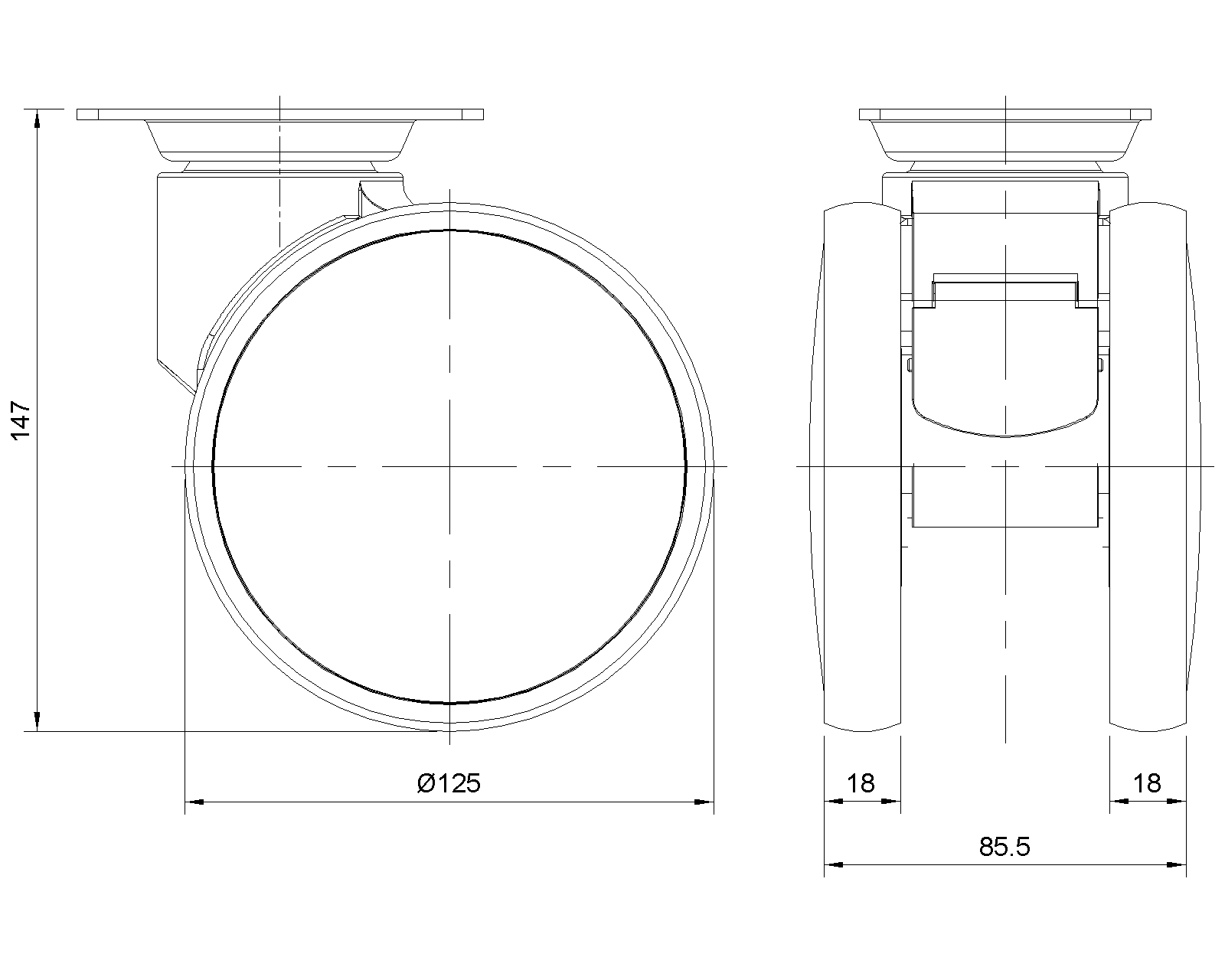 | Wheel tread: Thermoplastic rubber elastomer (TPR) Wheel Center: Made of high-quality impact-resistant polypropylene Drawings are for reference only and may differ from the product |