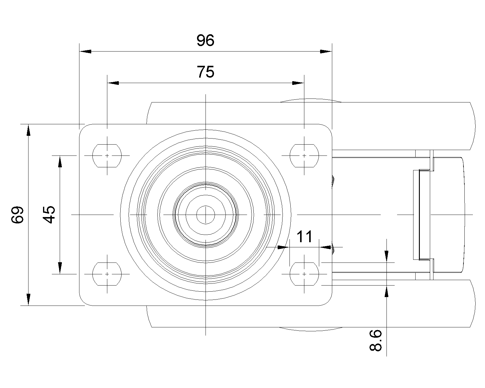 | Rigid Casters, 75x45 angled perforated Top Plate White legs made of polyamide reinforced material Rust-proof, Corrosion resistant, Attractive appearance, Economical, and allows for smooth rotation High-Quality Impact-Resistant Polypropylene Wheel Center, High-Quality Reinforced Polypropylene Rubber (TPR) Wheel Tread Dark gray, Bearing - Ball Bearings |