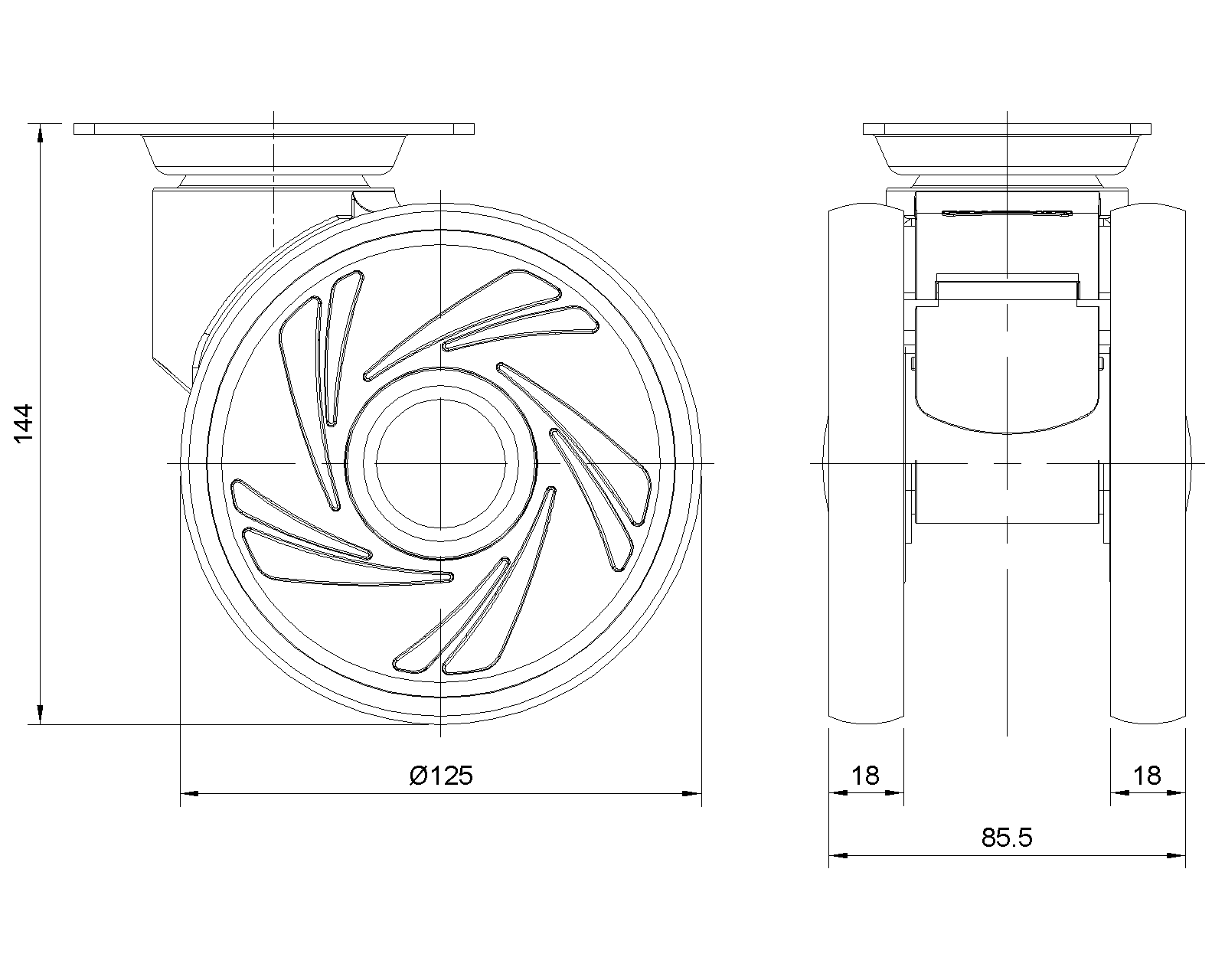 | Resolute Rubber wheel (window gray dark gray) Wheel Diameter x Wheel Width 125 x 18mm |