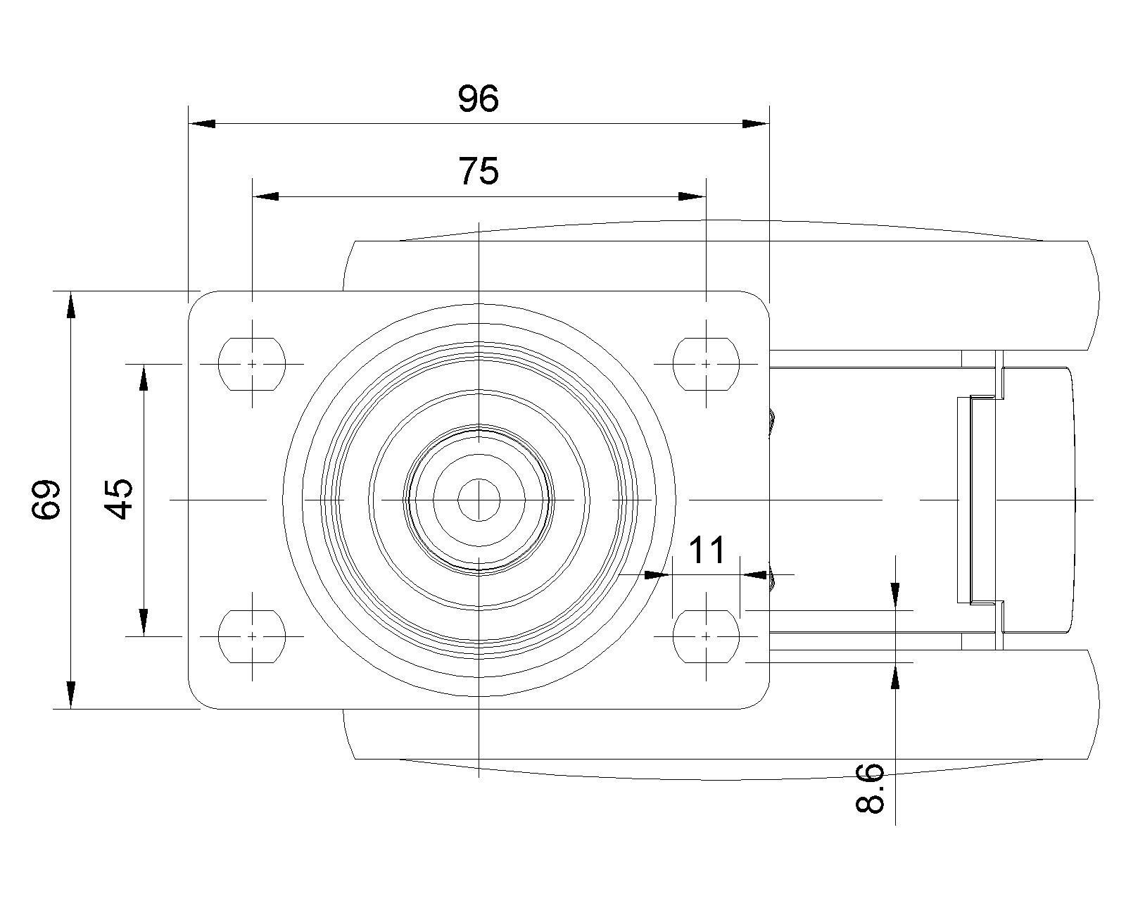 | Rigid Casters, 75x45 angled perforated Top Plate White legs made of polyamide reinforced material Rust-proof, Corrosion resistant, Attractive appearance, Economical, and allows for smooth rotation High-Quality Impact-Resistant Polypropylene Wheel Center, High-Quality Reinforced Polypropylene Rubber (TPR) Wheel Tread Dark gray, Bearing - Ball Bearings |