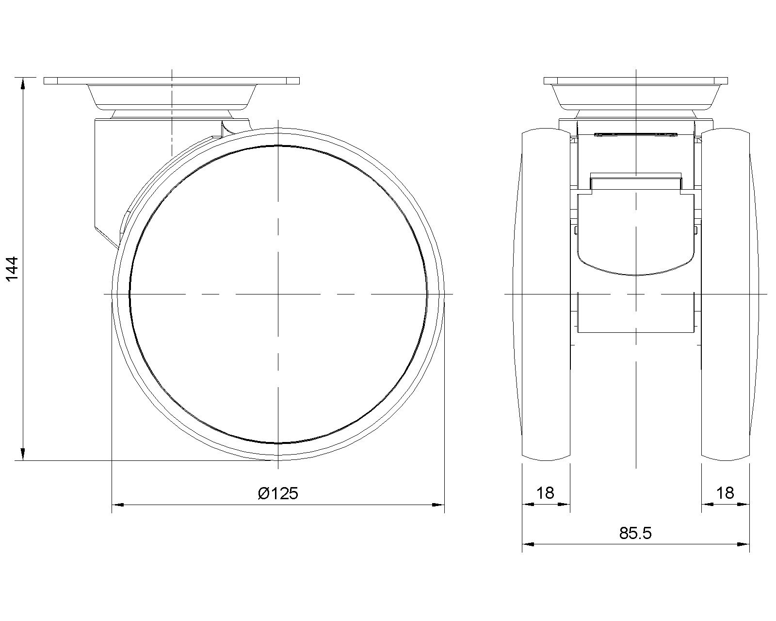 | Wheel tread: Thermoplastic rubber elastomer (TPR) Wheel Center: Made of high-quality impact-resistant polypropylene Drawings are for reference only and may differ from the product |