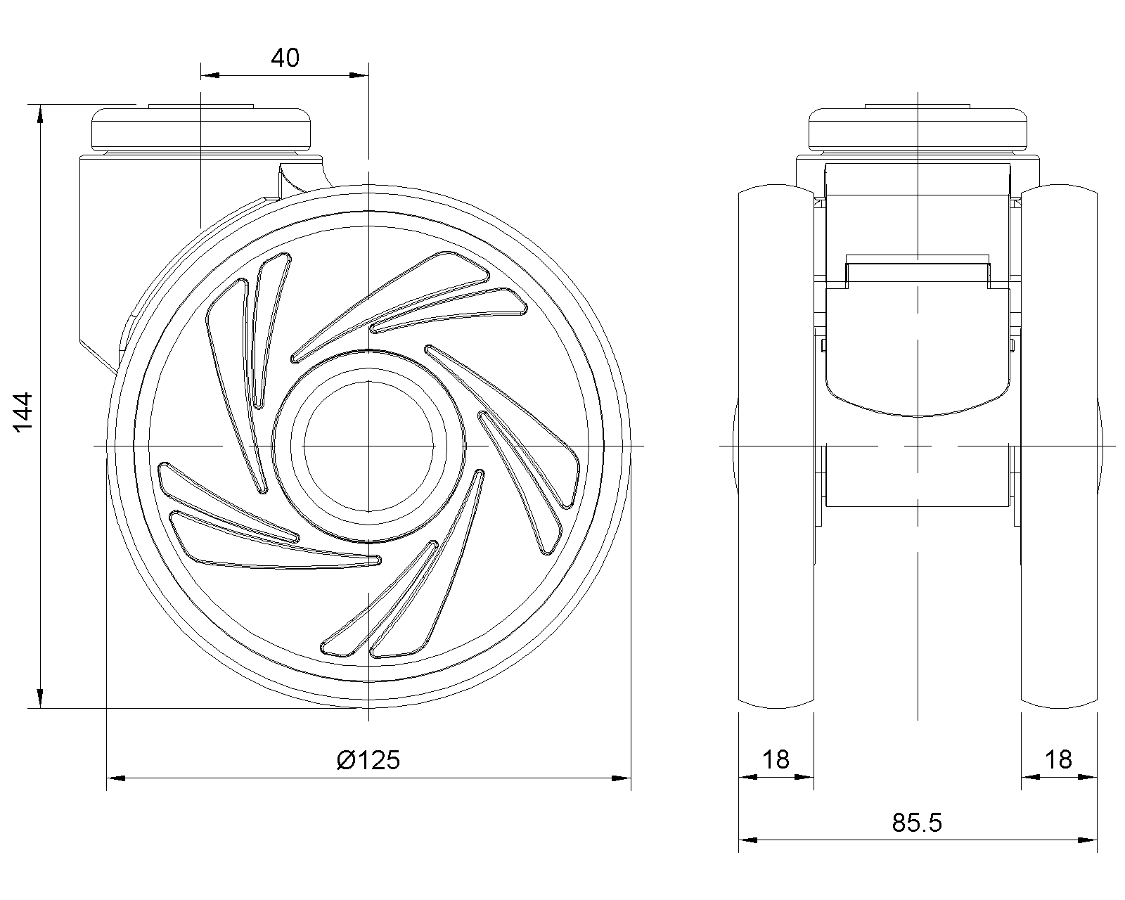 | Resolute Rubber wheel (window gray dark gray) Wheel Diameter x Wheel Width 125 x 18mm |