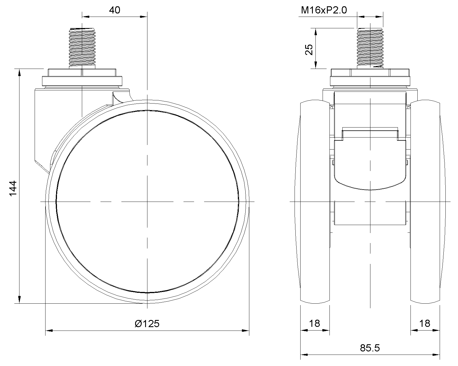 Actual Casters, Threaded Stem M16x25 Window gray Casters made of polyamide reinforced material Rust-proof, Corrosion resistant, Attractive appearance, Economical, and rotates smoothly High-Quality Impact-Resistant Polypropylene Wheel Center, High-Quality Reinforced Polypropylene Rubber (TPR) Wheel Tread Dark gray, Bearing—Ball Bearings |