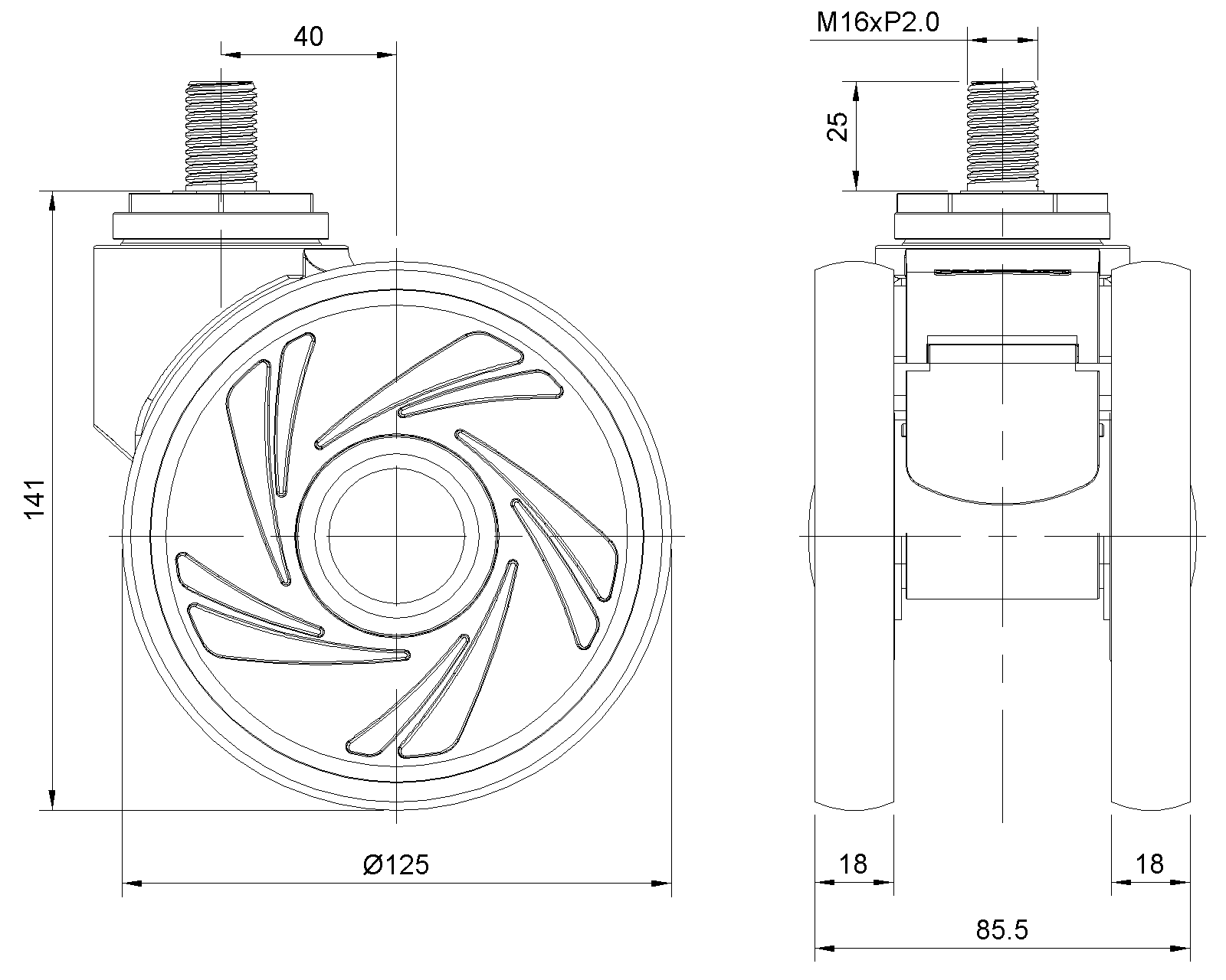 Actual Casters, Threaded Stem M16x25 Window gray Casters made of polyamide reinforced material Rust-proof, Corrosion resistant, Attractive appearance, Economical, and rotates smoothly High-Quality Impact-Resistant Polypropylene Wheel Center, High-Quality Reinforced Polypropylene Rubber (TPR) Wheel Tread Dark gray, Bearing—Ball Bearings |