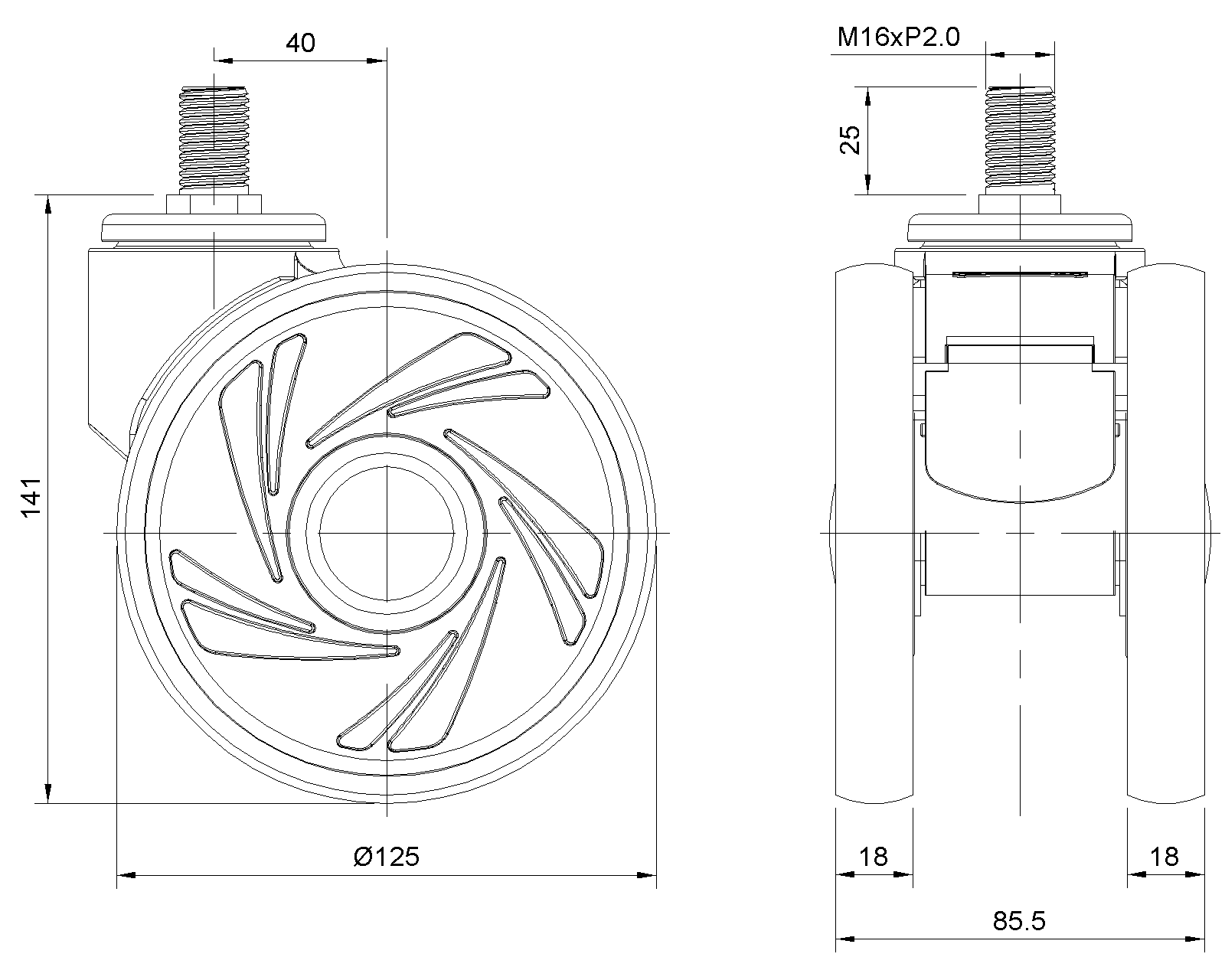 | Resolute Rubber wheel (window gray dark gray) Wheel Diameter x Wheel Width 125 x 18mm |
