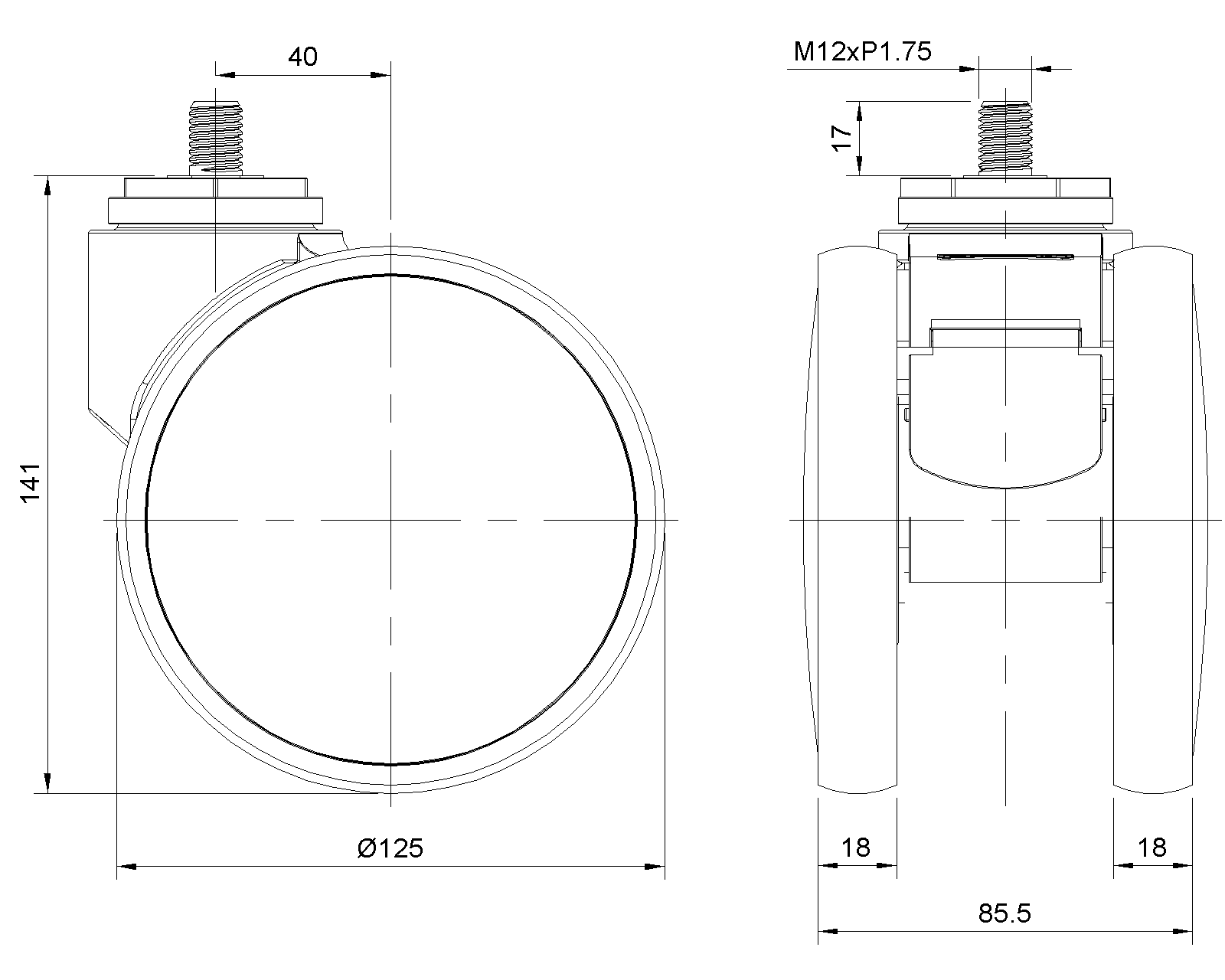 Actual Casters, Threaded Stem M12x17 Window gray Casters made of polyamide reinforced material Rust-proof, Corrosion resistant, Attractive appearance, Economical, and rotates smoothly High-Quality Impact-Resistant Polypropylene Wheel Center, High-Quality Reinforced Polypropylene Rubber (TPR) Wheel Tread Dark gray, Bearing—Ball Bearings |