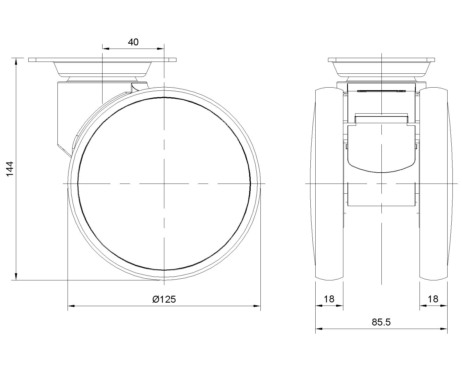 | Wheel tread: Thermoplastic rubber elastomer (TPR) Wheel Center: Made of high-quality impact-resistant polypropylene Drawings are for reference only and may differ from the product |