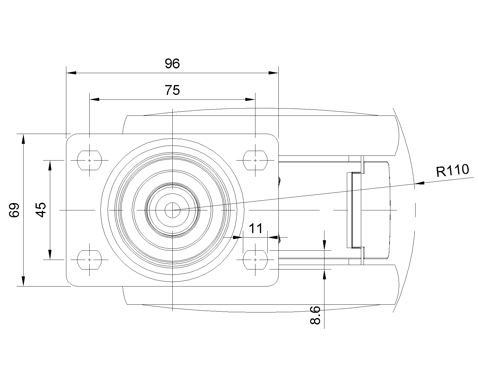 Actuable Casters, 75x45 angled perforated Top Plate Window gray legs made of polyamide reinforced material Rust-proof, Corrosion resistant, Attractive appearance, Economical, and allows for smooth rotation High-Quality Impact-Resistant Polypropylene Wheel Center, High-Quality Reinforced Polypropylene Rubber (TPR) Wheel Tread Dark gray, Bearing - Ball Bearings |