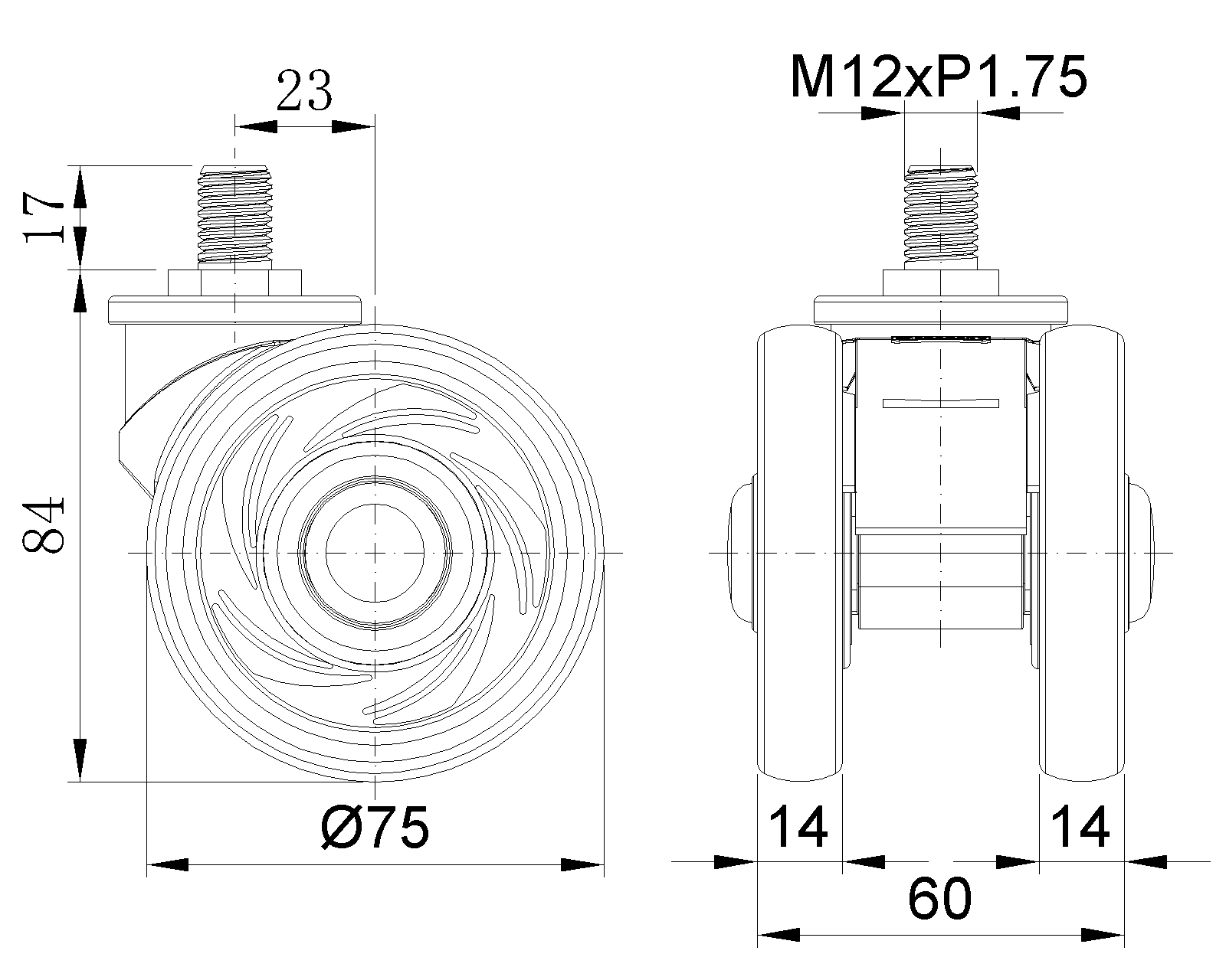 | Resolute Rubber wheel(all dark gray) Wheel Diameter x Wheel Width 75 x 14mm |