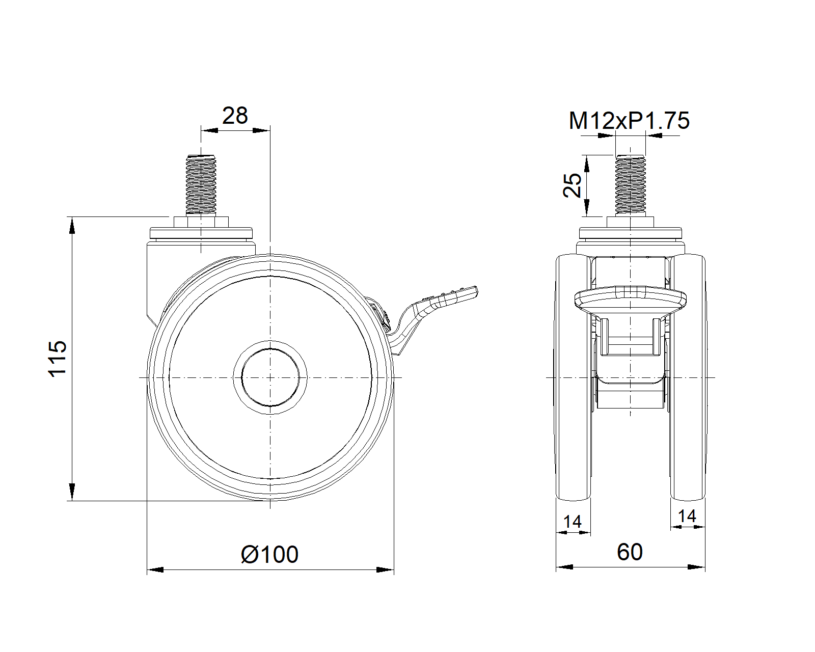 | Resolute Rubber wheel (white dark gray) Wheel Diameter x Wheel Width 100 x 14mm |