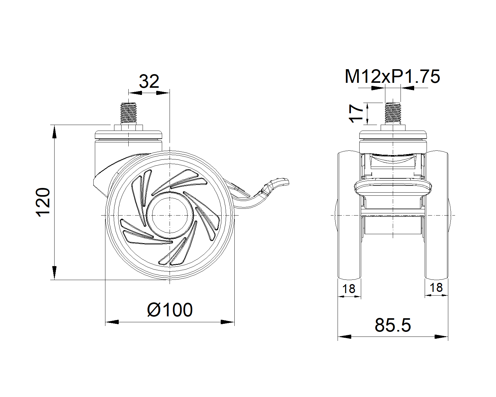 | Resolute Rubber wheel (white dark gray) Wheel Diameter x Wheel Width 100 x 18mm |