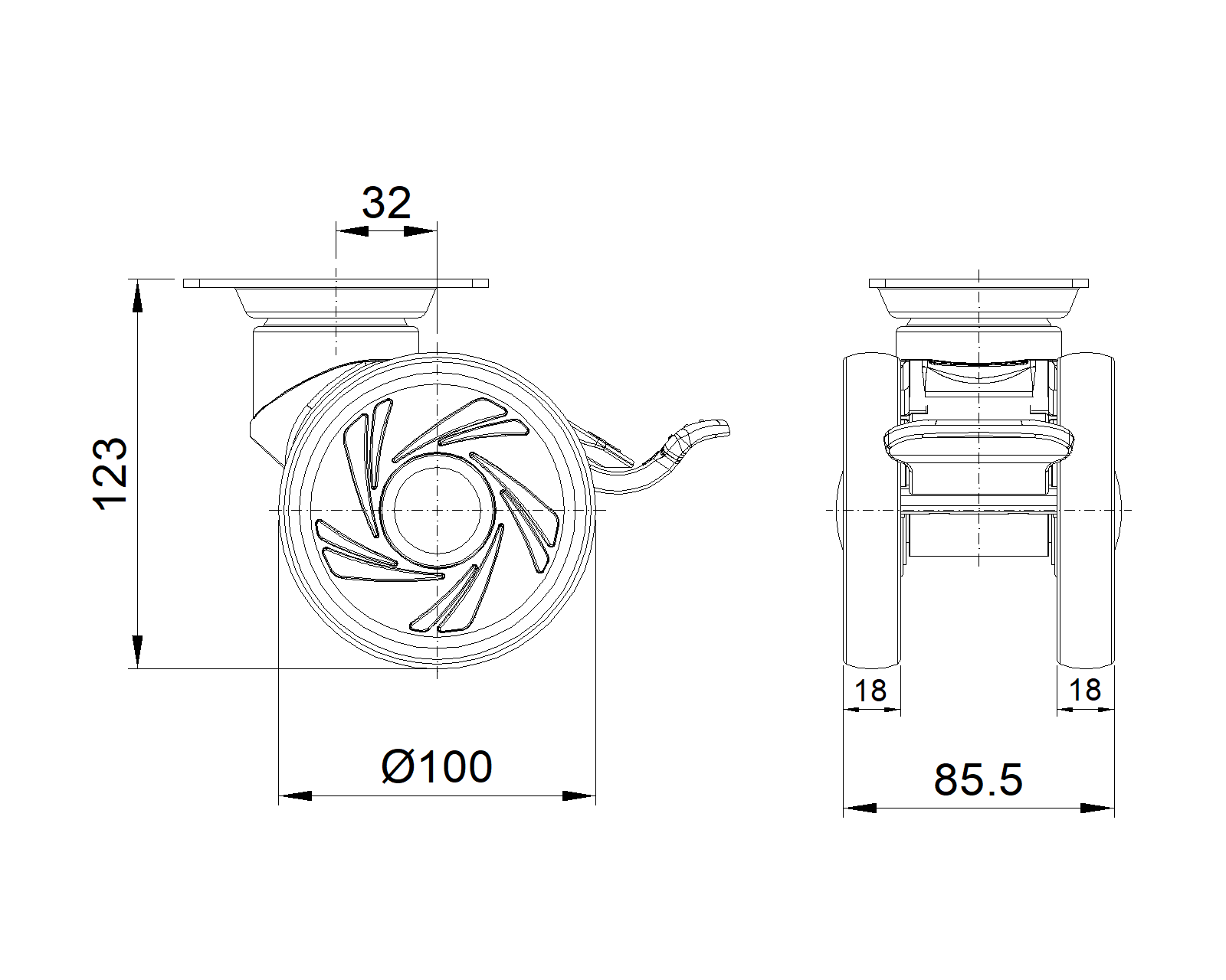 | Wheel tread: Thermoplastic rubber elastomer (TPR) Wheel Center: Made of high-quality impact-resistant polypropylene Drawings are for reference only and may differ from the product |